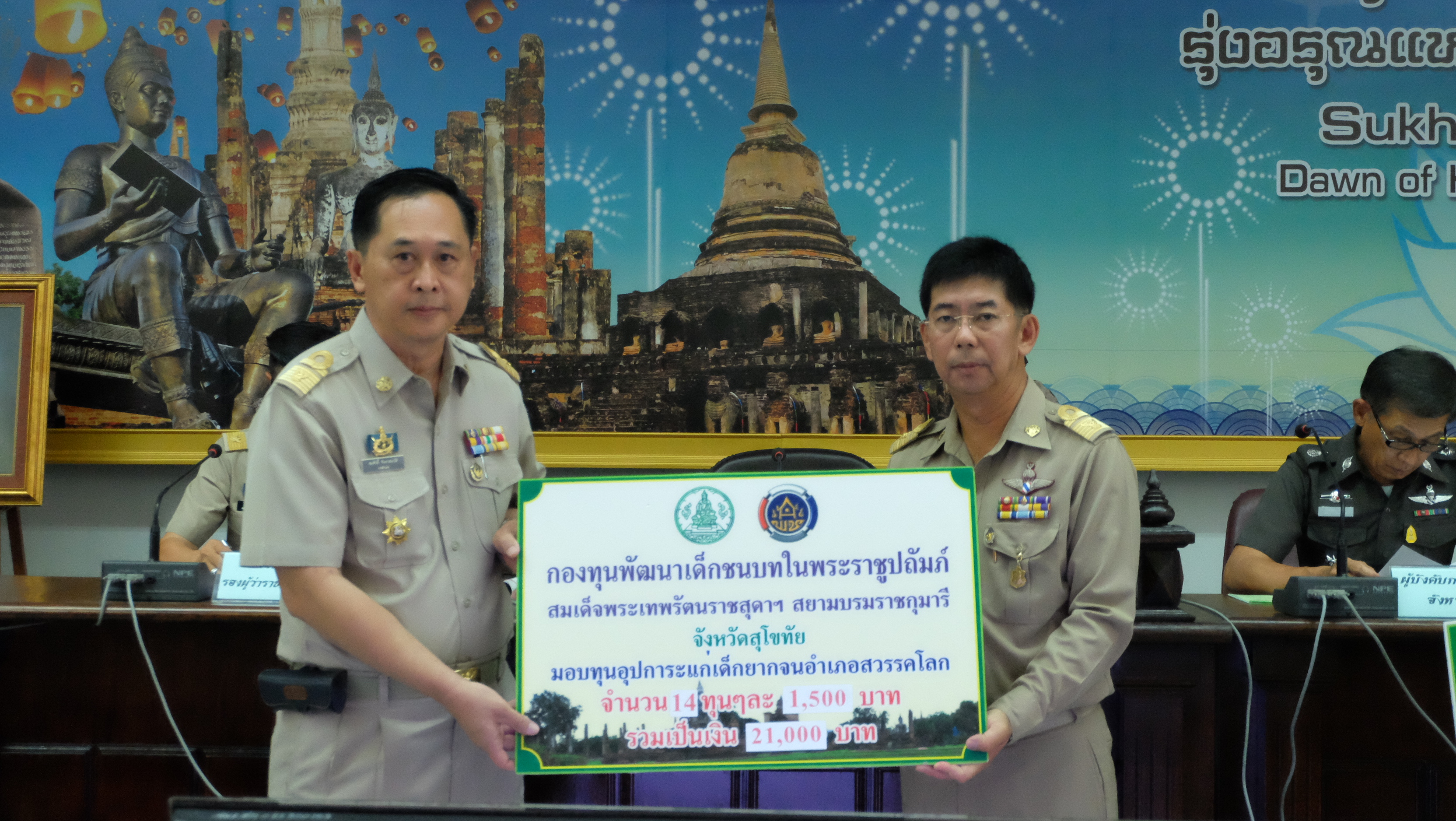 #สุโขทัย ดินแดนแห่งความสุข# นายปิติ แก้วสลับสี ผู้ว่าราชการจังหวัดสุโขทัย มอบทุนอุปการะเด็กกองทุนพัฒนาเด็กชนบท ในพระราชูปถัมภ์สมเด็จพระเทพรัตนราชสุดาฯ สยามบรมราชกุมารี ให้กับนายอำเภอทุกอำเภอ เพื่อนำไปมอบเป็นทุนช่วยเหลือเด็กยากจนและด้อยโอกาสของแต่ละอำเภอ