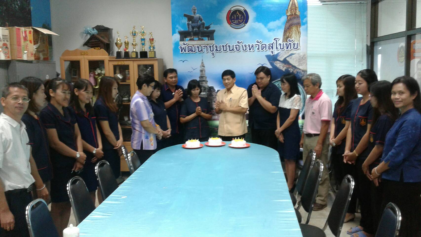 #สุโขทัย ดินแดนแห่งความสุข#วันที่ 27 กันยายน 2559 นายสุวิน พึ่งเงิน พัฒนาการจังหวัดสุโขทัยอวยพรเนื่องในวันคล้ายวันเกิดของเจ้าหน้าที่พัฒนาชุมชน จังหวัดสุโขทัยจำนวน 3 คนเพื่อเป็นการสร้างขวัญและกำลังใจให้กับบุคลากรขององค์กร