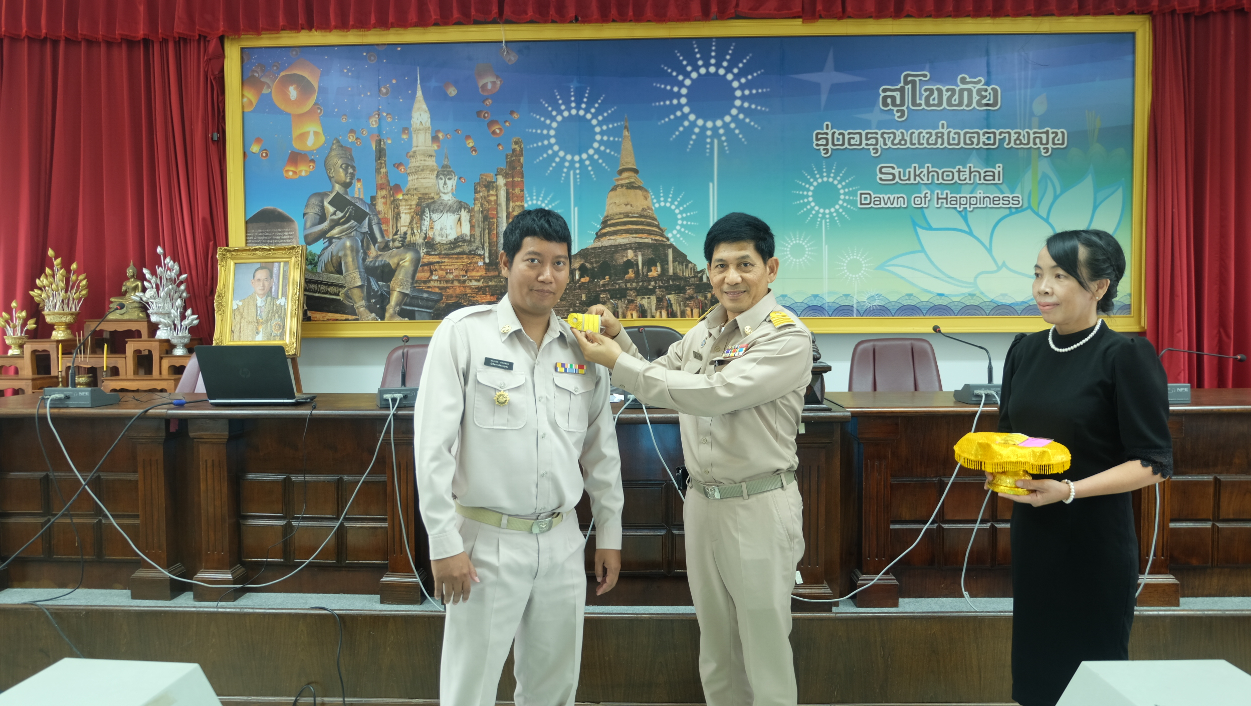 #สุโขทัย ดินแดนแห่งความสุข #วันที่ 7 พฤศจิกายน 2559เวลา 09.00 น. นายสุวิน พึ่งเงิน พัฒนาการจังหวัดสุโขทัย ได้แสดงความยินดีพร้อมทั้งประดับขีดให้กับนายทรงกลด เกสรสกุล นักวิชการพัฒนาชุมชนปฏิบัติการ สพอ. ศรีนคร ซึ่งได้เลื่อนตำแหน่งขึ้นเป็นนักวิชาการพัฒนาชุมชนชำนาญการ สพอ. ศรีนคร จังหวัดสุโขทัย (ข่าวโดย สถานีข่าว พช. CNS จังหวัดสุโขทัย)