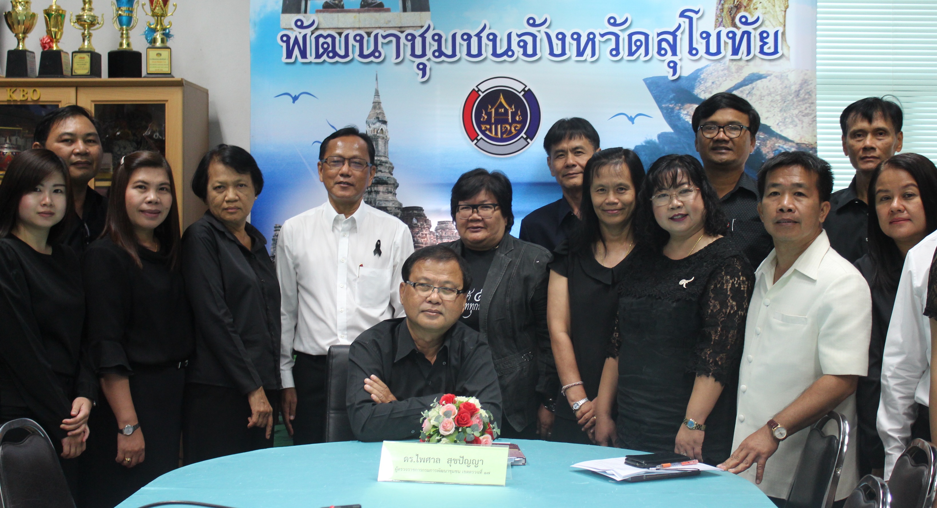 วันที่ 27 เมษายน 2560 ดร.ไพศาล สุขปัญญา ผู้ตรวจราชการกรมการพัฒนาชุมชน เขตตรวจราชการที่ 17 ประชุมตรวจราชการของจังหวัดสุโขทัย โดยตรวจติดตามการดำเนินงานการจัดเก็บข้อมูล จปฐ.และกชช.2ค การขับเคลื่อนงานเศรษฐกิจฐานรากและประชารัฐ การดำเนินงานโครงการสัมมาชีพ การดำเนินงาน OTOP การเบิกจ่ายงบประมาณ ของสำนักงานพัฒนาชุมชนจังหวัดสุโขทัย โดยมีนายสุวิน พึ่งเงิน พัฒนาการจังหวัดสุโขทัย พร้อมด้วยหัวหน้ากลุ่ม/ฝ่าย พัฒนาการอำเภอ และนักวิชาการพัฒนาชุมชนรายงานผลการดำเนินงาน และแนวทางการแก้ไขปัญหาเพื่อให้เป็นไปตามเป้าหมาย ณ ห้องประชุมสำนักงานพัฒนาชุมชนจังหวัดสุโขทัย