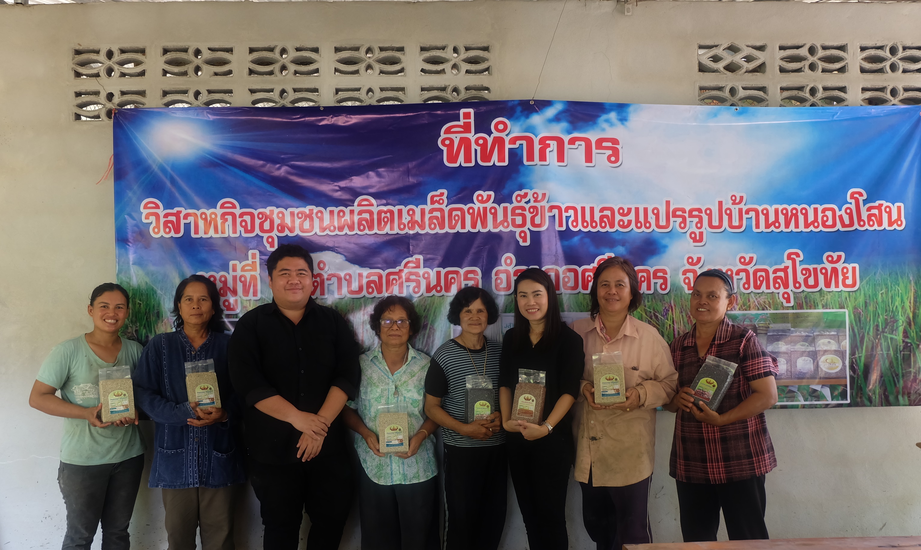 ติดตามสนับสนุนการดำเนินงานตามโครงการพัฒนาศักยภาพผู้ผลิต ผู้ประกอบการ OTOP กลุ่มปรับตัวสู่การพัฒนา (กลุ่ม Quadrant D) เพื่อส่งเสริมและพัฒนาผลิตภัณฑ์ของกลุ่มเพื่อเข้าสู่ตลาด Trader OTOP คือ กลุ่มวิสาหกิจชุมชนบ้านหนองโสนผลิตข้าวพันธุ์ดีและแปรรูปข้าวกล้อง หมู่ที่ 6 ต.ศรีนคร อำเภอศรีนคร จังหวัดสุโขทัย