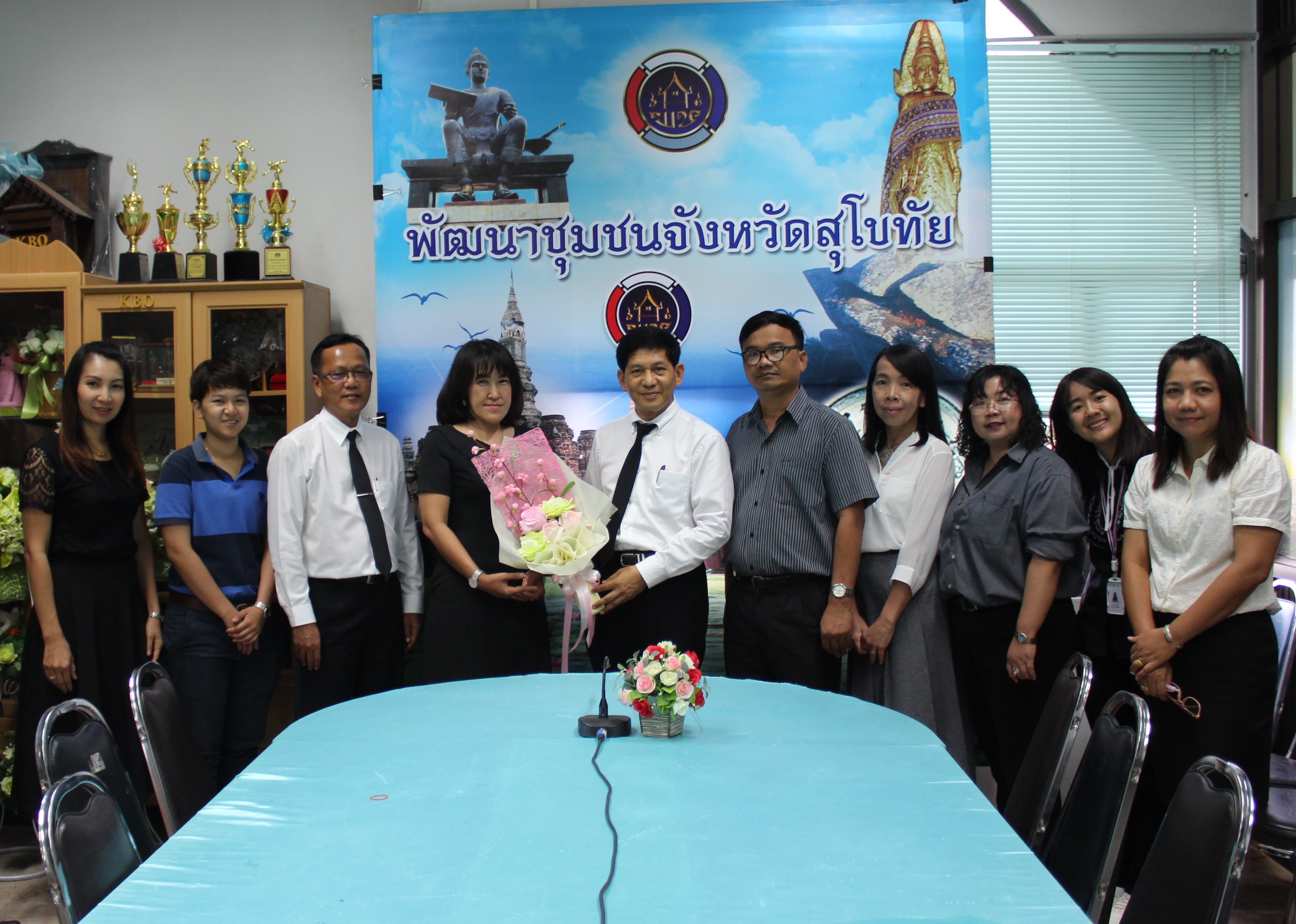 วันที่ 9 พฤษภาคม 2560 นายสุวิน พึ่งเงิน พัฒนาการจังหวัดสุโขทัย หัวหน้ากลุ่มงาน/ฝ่าย และนักวิชาการพัฒนาชุมชนจังหวัดสุโขทัย อวยพรเนื่องในวันคล้ายวันเกิดของนางสาวรุ่งนภา ชูเตชะ นักวิชาการพัฒนาชุมชนชำนาญการ กลุ่มงานส่งเสริมการพัฒนาชุมชน ขอให้มีความสุขมากๆนะคะ ณ สำนักงานพัฒนาชุมชนจังหวัดสุโขทัย