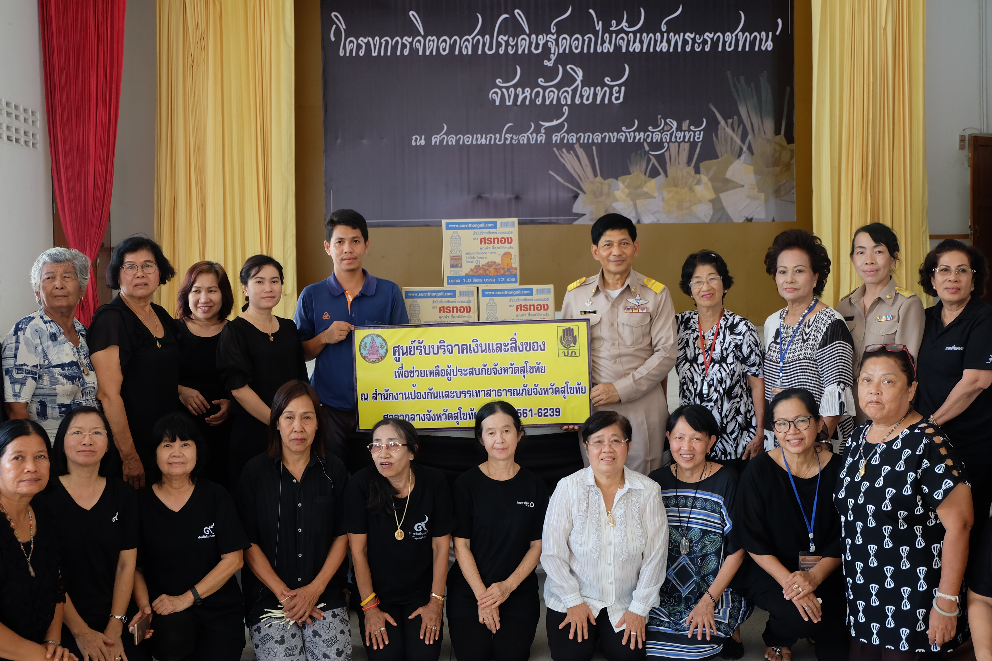 วันที่ 30 พฤษภาคม 2560 นายสุวิน พึ่งเงิน พัฒนาการจังหวัดสุโขทัย มอบสิ่งของ(น้ำมันพืชศรทอง ) จำนวน 5 ลัง แก่สำนักงานป้องกันและบรรเทาสาธารณภัยจังหวัดสุโขทัย ซึ่งได้รับการบริจาคจากนายกฤษณ์ พรอำนวยทรัพย์ ผู้จัดการบริษัทน้ำมันพืชศรทอง และเป็นกรรมการบริษัทประชารัฐรักสามัคคีสุโขทัย(วิสาหกิจเพื่อสังคม) จำกัด ที่มอบสิ่งของผ่านสำนักงานพัฒนาชุมชนจังหวัดสุโขทัย เพื่อช่วยเหลือผู้ประสบอุทกภัย อำเภอคีรีมาศ จังหวัดสุโขทัย ต่อไป