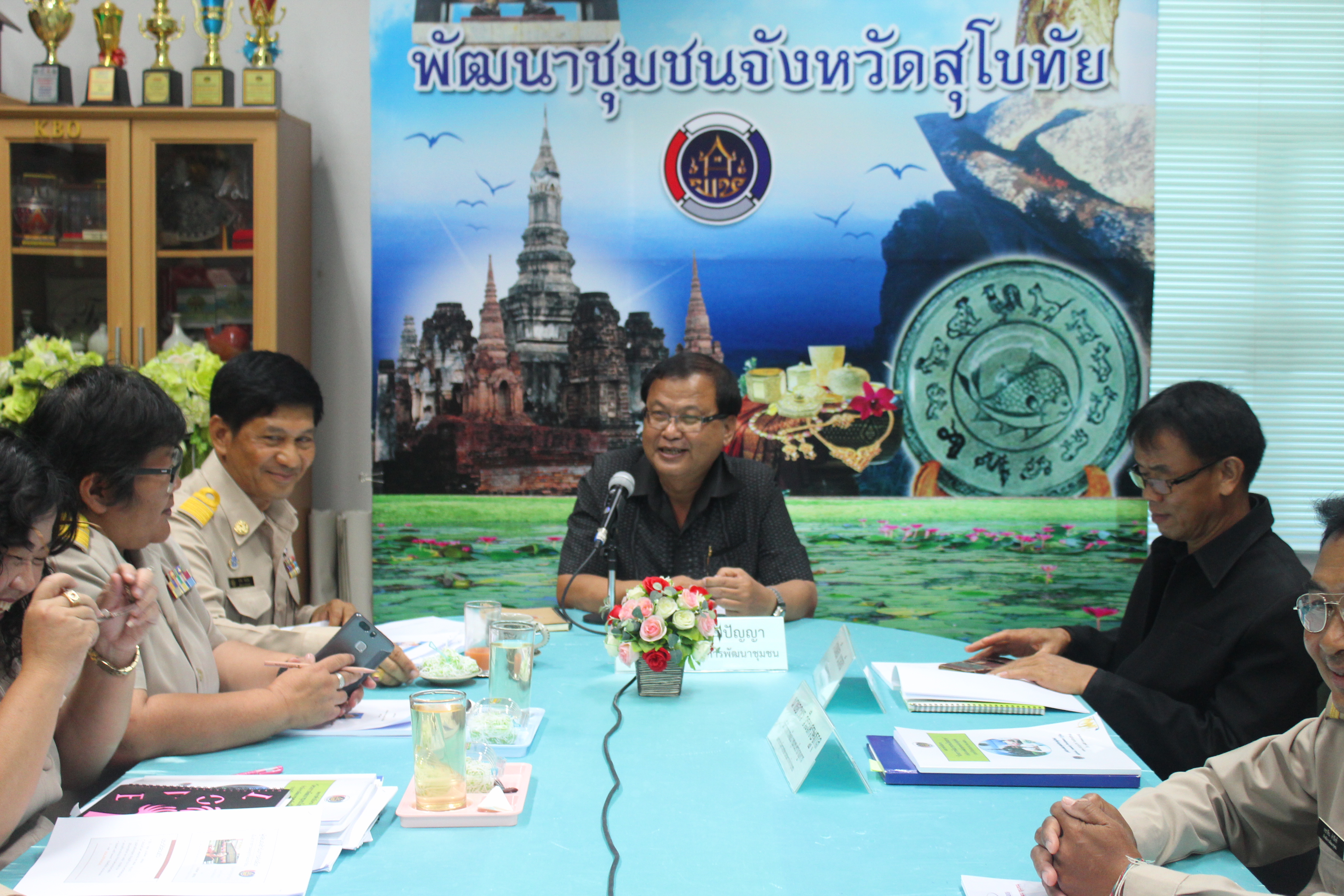 ณ ห้องประชุม สำนักงานพัฒนาชุมชนจังหวัดสุโขทัย มีนายสุวิน พึ่งเงิน พัฒนาการจังหวัดสุโขทัยและทีมงาน ให้การต้อนรับ และนำเสนอผลการดำเนินงานหน่วยงานต้นแบบการส่งเสริมค่านิยมองค์การ