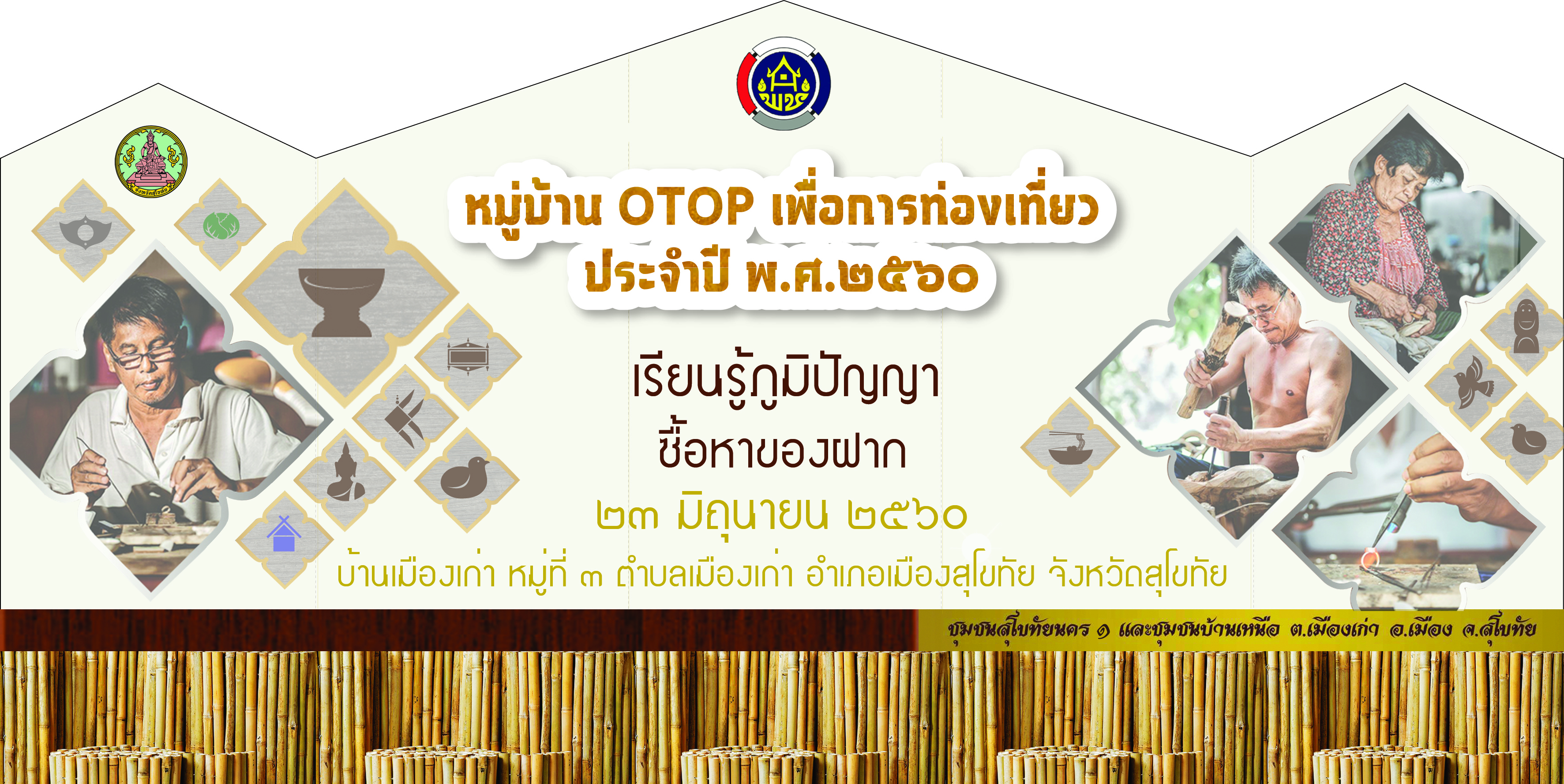 เรียนรู้ ภูมิปัญญา ซื้อหาของฝาก กับหมู่บ้าน OTOP เพื่อการท่องเที่ยวจังหวัดสุโขทัย ประจำปี 2560 บ้านเมืองเก่า หมู่ที่ 3 ตำบลเมืองเก่า อำเภอเมืองสุโขทัย จังหวัดสุโขทัย