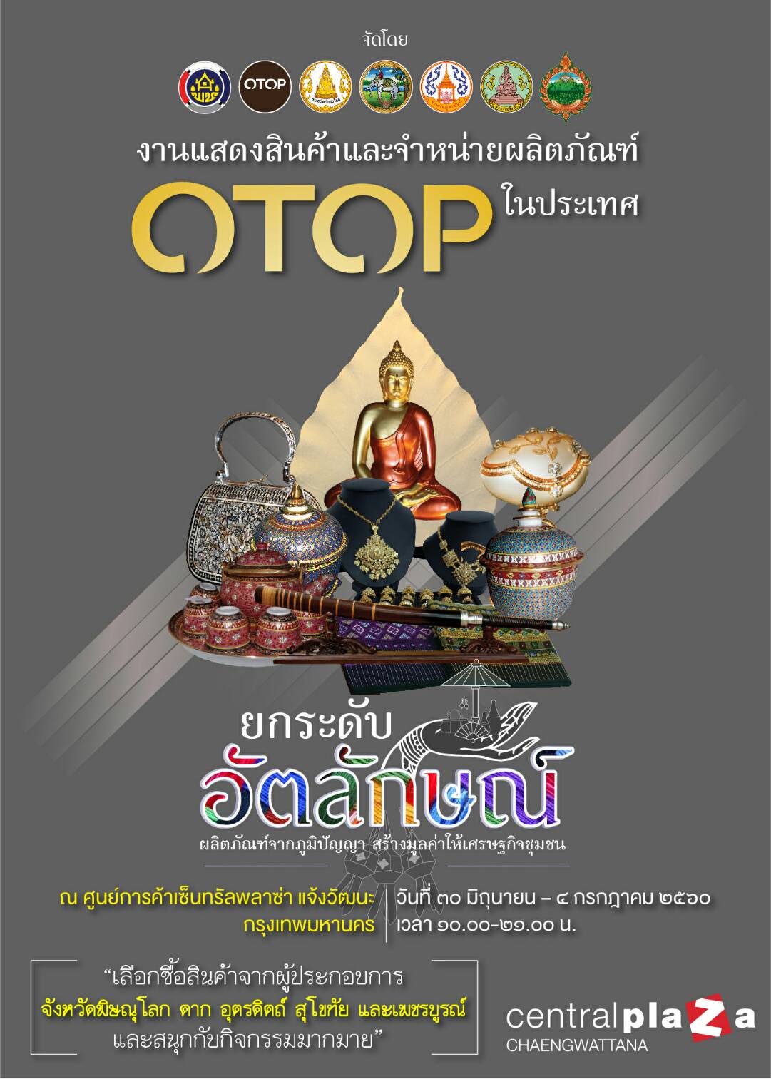ขอเชิญเที่ยวชมงาน”ยกระดับอัตลักณ์ผลิตภัณฑ์จากภูมิปัญญา สร้างมูลค่าให้เศรษฐกิจชุมชน” ในงานการแสดงสินค้าและจำหน่ายผลิตภัณฑ์ OTOP ในประเทศ ของกลุ่มจังหวัดภาคเหนือตอนล่าง 1 (จ.พิษณุโลก ตาก สุโขทัย อุตรดิตถ์ เพชรบูรณ์) ในวันที่ 30 มิ.ย.- 4 ก.ค.60 ณ ศูนย์การค้าเซ็นทรัลพลาซา แจ้งวัฒนะ กรุงเทพมหานคร