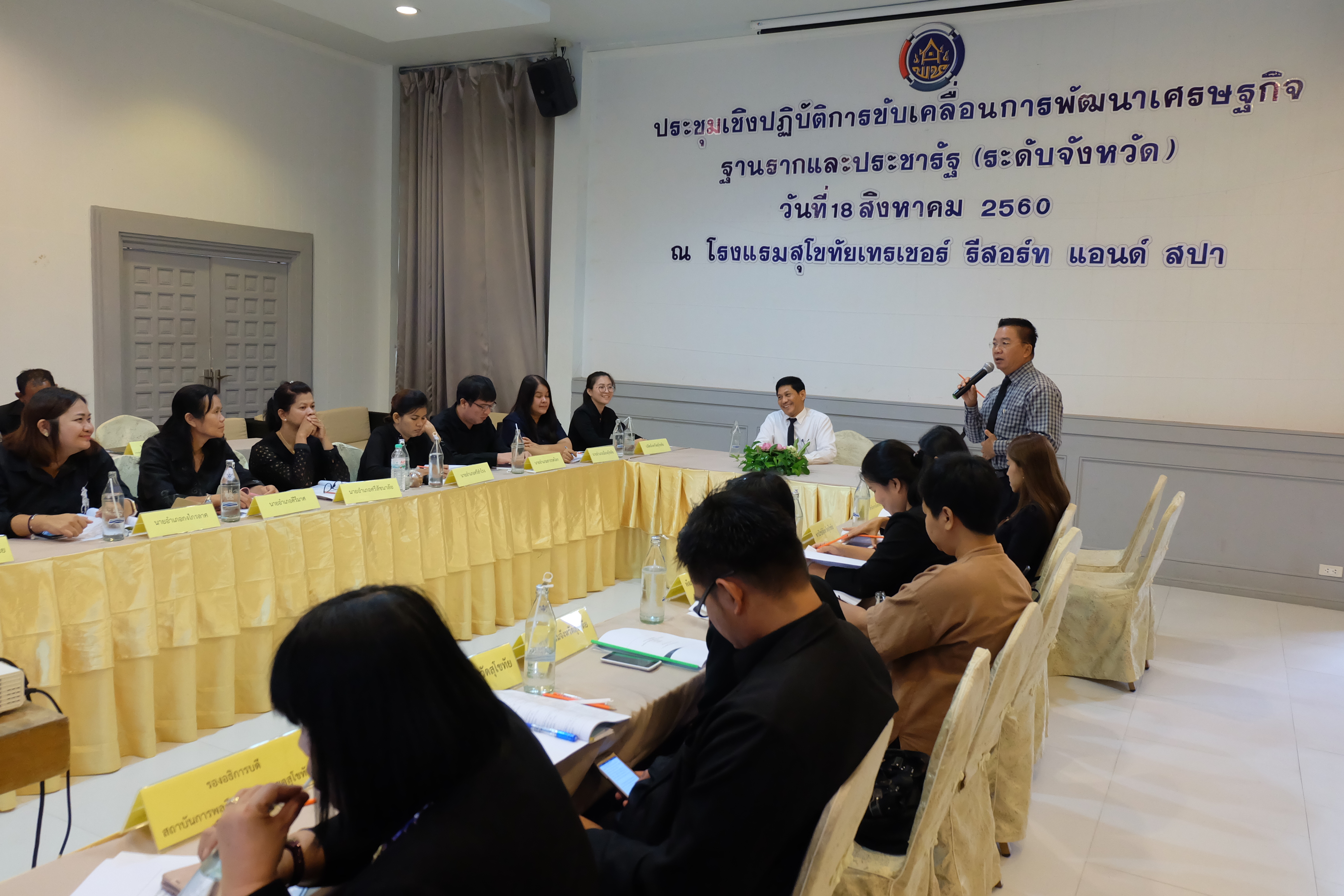 วันที่ 18 สิงหาคม 2560 นายสุวิน พึ่งเงิน พัฒนาการจังหวัดสุโขทัย เป็นประธานการประชุมเชิงปฏิบัติการขับเคลื่อนการพัฒนาเศรษฐกิจฐานรากและประชารัฐ (ระดับจังหวัด) จังหวัดสุโขทัย เพื่อสร้างความเข้าใจร่วมกันในการขับเคลื่อนงานเศรษฐกิจฐานรากและประชารัฐจังหวัดสุโขทัย ระหว่างคณะทำงานสนับสนุน D1-D3 และ E1 – E3 และคณะทำงานฯระดับอำเภอ