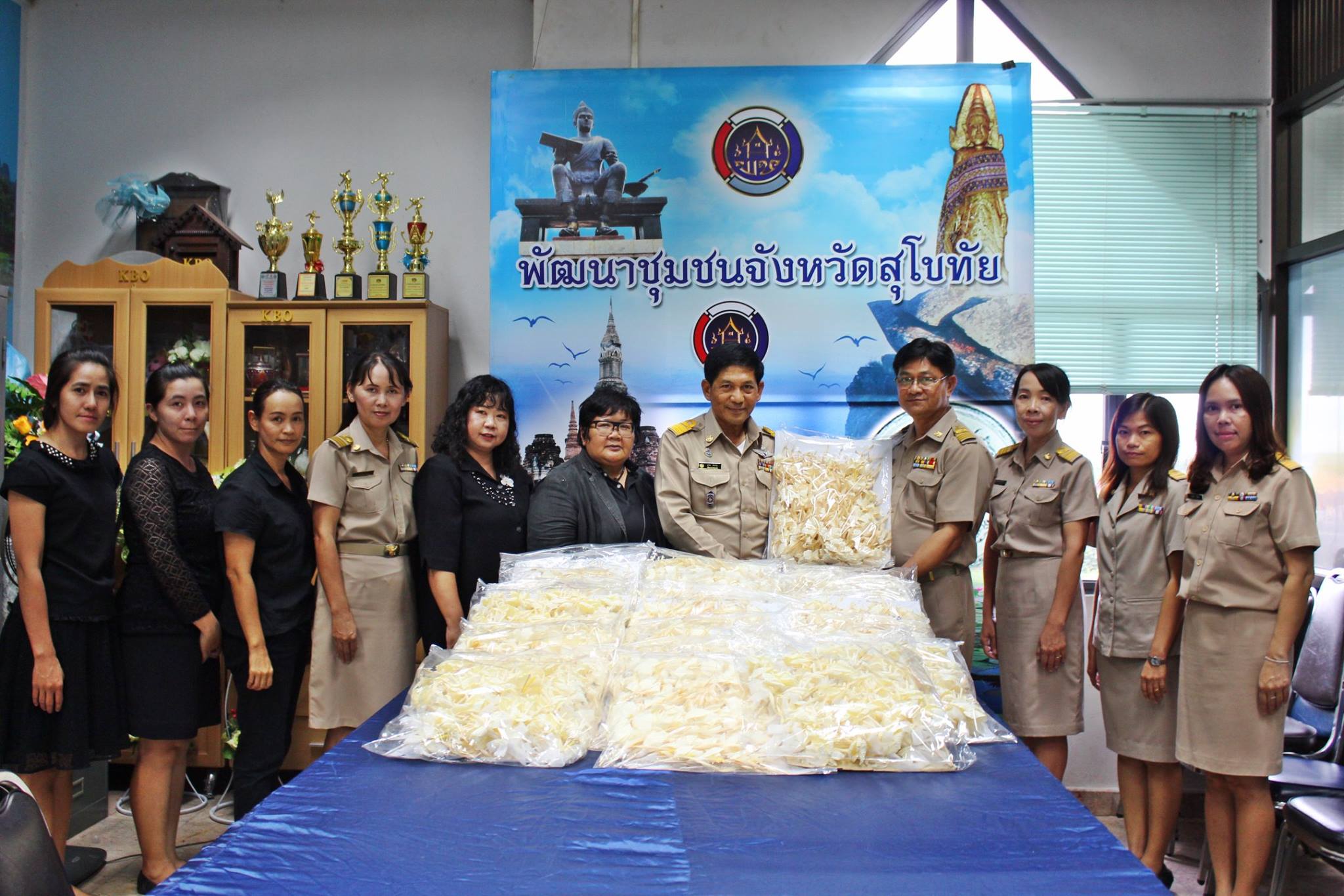วันที่ 21 สิงหาคม 2560 นายสุวิน พึ่งเงิน พัฒนาการจังหวัดสุโขทัย พร้อมด้วยนางสาวกฤษณา กันทะสา หัวหน้ากลุ่มงานสารสนเทศฯ รับมอบดอกไม้จันทน์พระราชทาน จากผู้แทนผู้อำนวยการสำนักงานเขตพื้นที่การศึกษามัธยมศึกษา(สพม.) เขต 38 (สุโขทัย-ตาก) โดยมีดอกไม้จันทน์พระราชทาน จำนวน 4,000 ดอก เพื่อทูลเกล้าฯ ถวายในพระราชพิธีถวายพระเพลิงพระบรมศพพระบาทสมเด็จพระปรมินทรมหาภูมิพลอดุลยเดช บรมนาถบพิตร ณ ห้องประชุมสำนักงานพัฒนาชุมชนจังหวัดสุโขทัย
