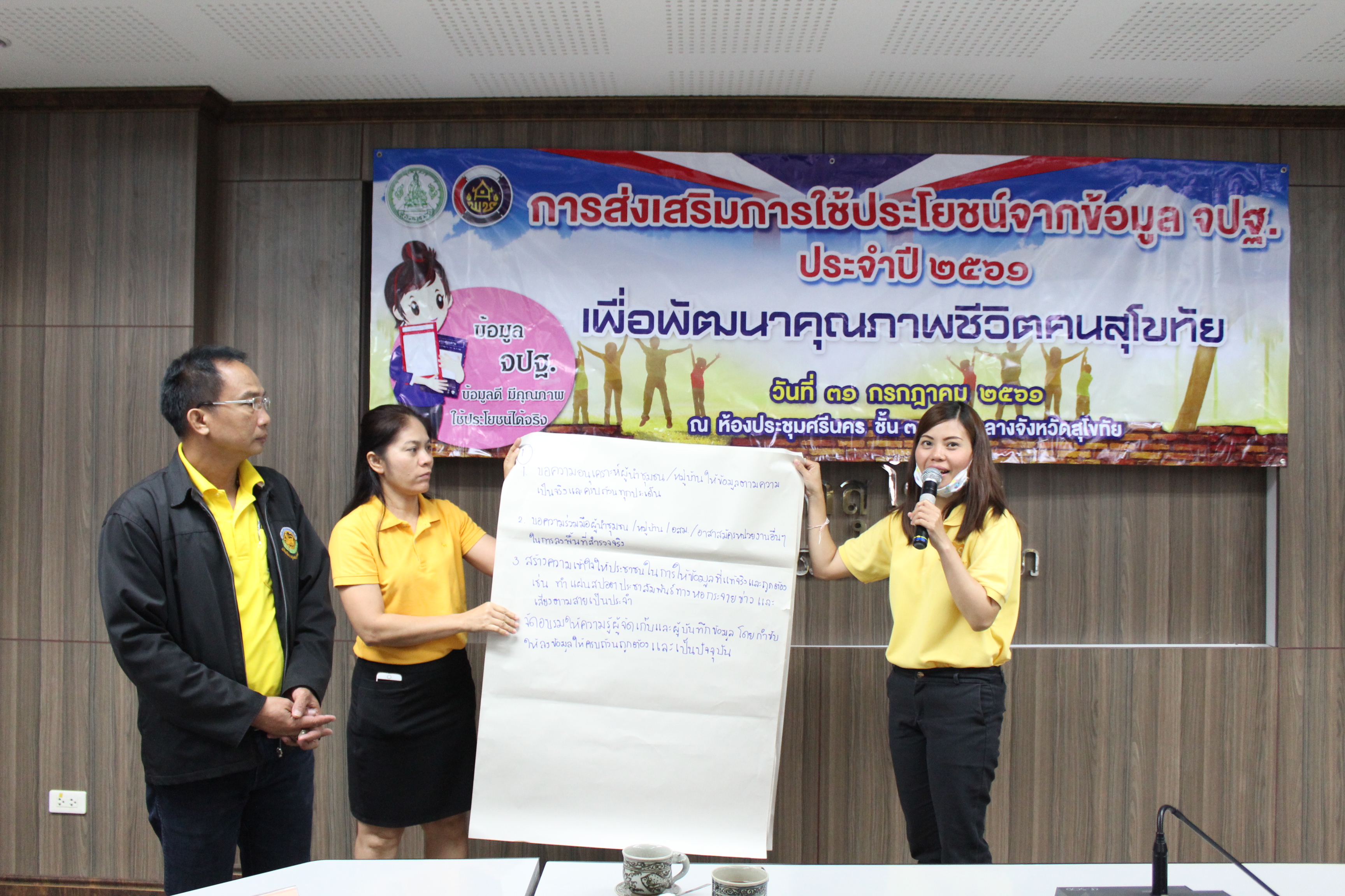 วันที่ 31 กรกฎาคม 2561 เวลา 09.30 น. นายสุวิน พึ่งเงิน พัฒนาการจังหวัดสุโขทัย เป็นประธานการประชุมเชิงปฏิบัติการส่งเสริมการใช้ประโยชน์ข้อมูลเพื่อการพัฒนาชุมชนแก่ภาคีการพัฒนาระดับจังหวัด เพื่อส่งเสริมและสนับสนุนการใช้ประโยชน์ข้อมูลความจำเป็นพื้นฐาน จากทุกภาคส่วนราชการ