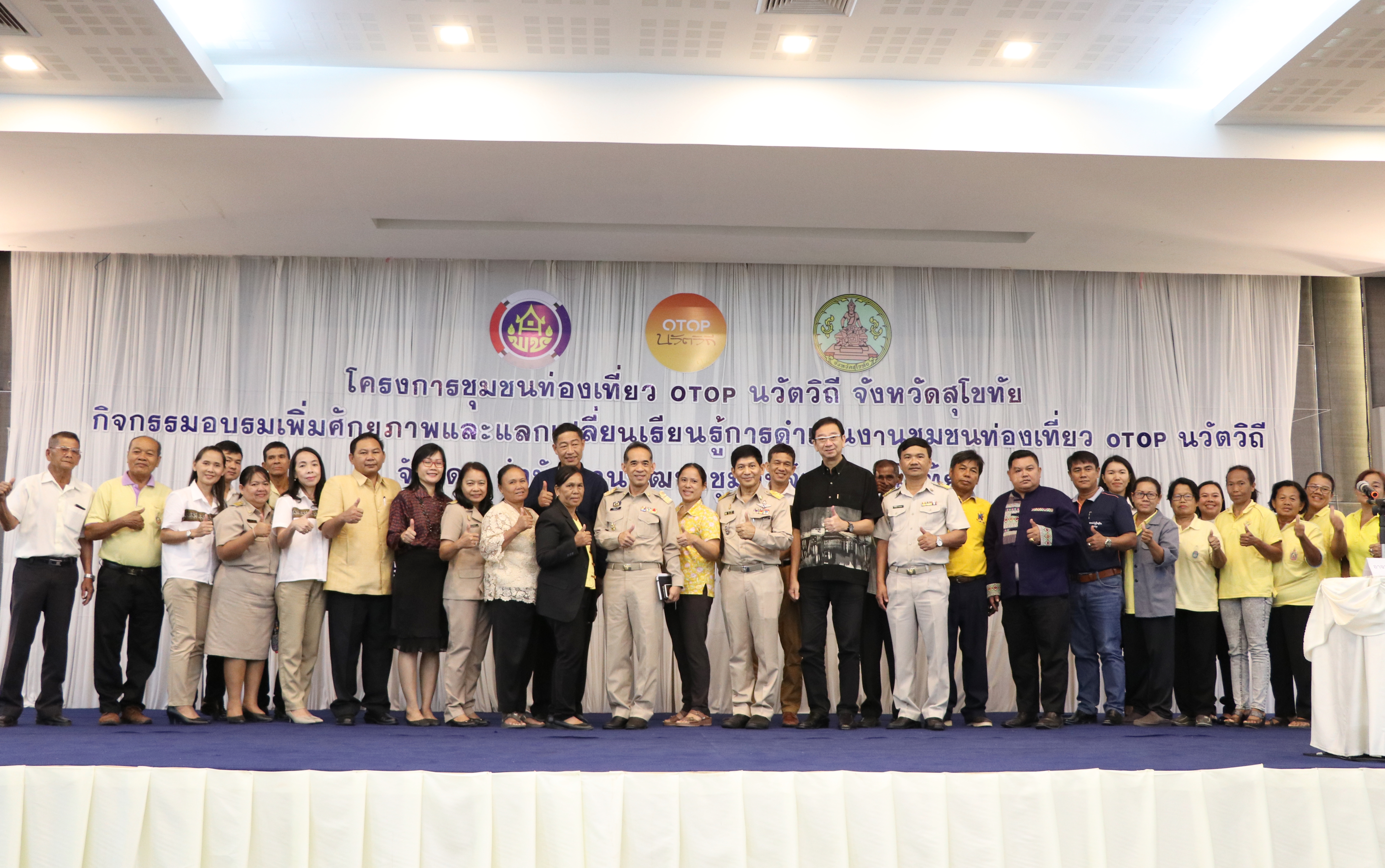 วันที่ 8 ตุลาคม 2561 เวลา 09.30 น. นายภูมิสิทธิ์ วังคีรี ปลัดจังหวัดสุโขทัย เป็นประธานเปิดโครงการชุมชนท่องเที่ยว OTOP นวัตวิถี จังหวัดสุโขทัย โดยมี คณะทำงานขับเคลื่อนชุมชนท่องเที่ยว OTOP นวัตวิถี ระดับหมู่บ้าน แกนนำกลุ่มอาชีพ ผู้แทนคณะกรรมการฯ จำนวน 47 หมู่บ้านๆละ 15 คน และเจ้าหน้าที่ รวม 730 คน อบรมจำนวน 3 รุ่น เข้ารับการอบรมเกี่ยวกับโครงการดังกล่าว