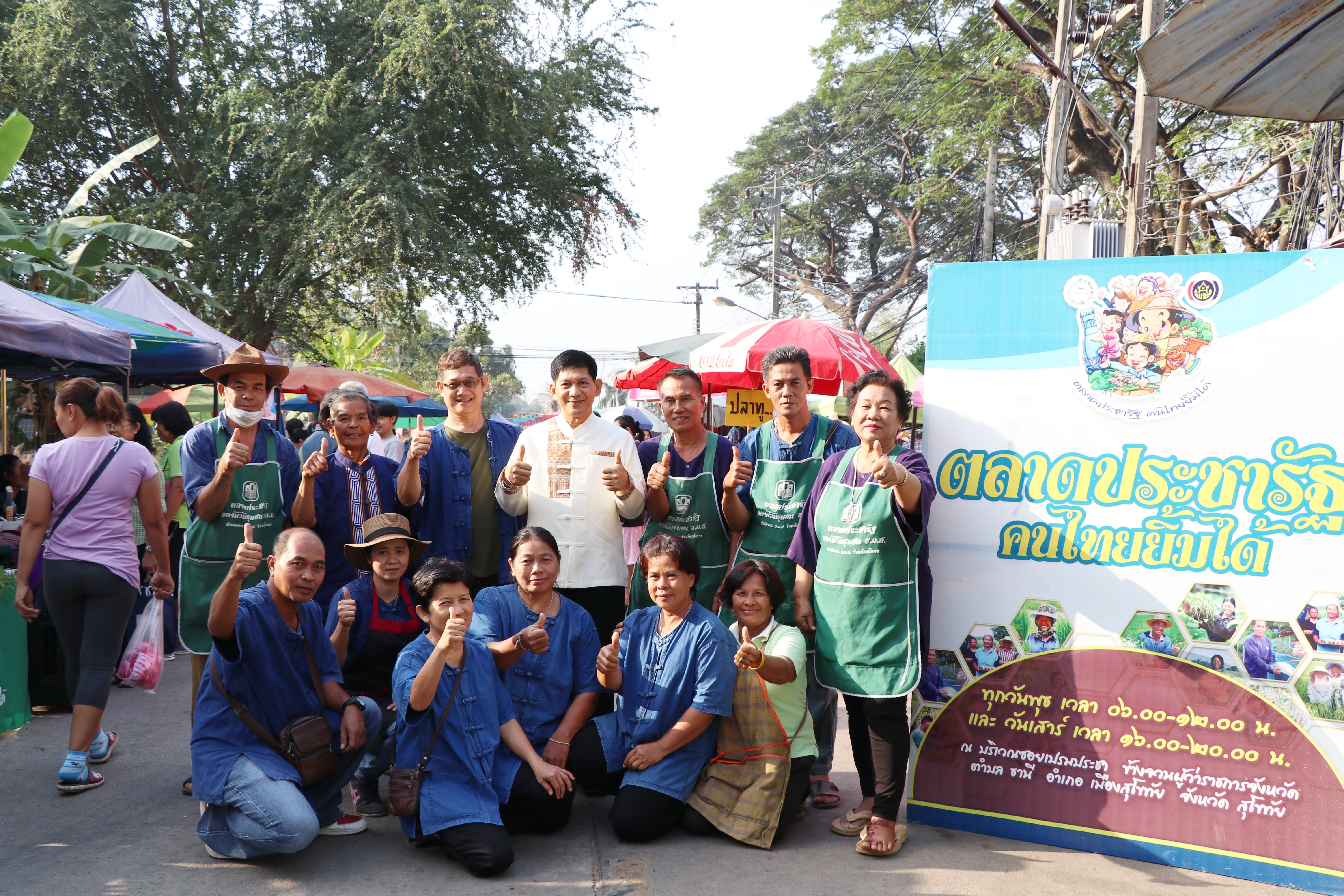 วันที่ 23 มกราคม 2562 เวลา 08.00 น. นายสุวิน พึ่งเงิน พัฒนาการจังหวัดสุโขทัย ตรวจเยี่ยมและให้คำแนะนำผู้ประกอบการร้านค้า รวมทั้งประชาสัมพันธ์เชิญชวน พี่น้องประชาชน และนักท่องเที่ยวเลือกซื้อสินค้าจากร้านค้า”ตลาดประชารัฐ คนไทยยิ้มได้” บริเวณซอยข้างธนาคาร ธกส. อำเภอเมืองสุโขทัย ซึ่งจัดขึ้นทุกวันพุธ เวลา 05.00 – 13.00 น.