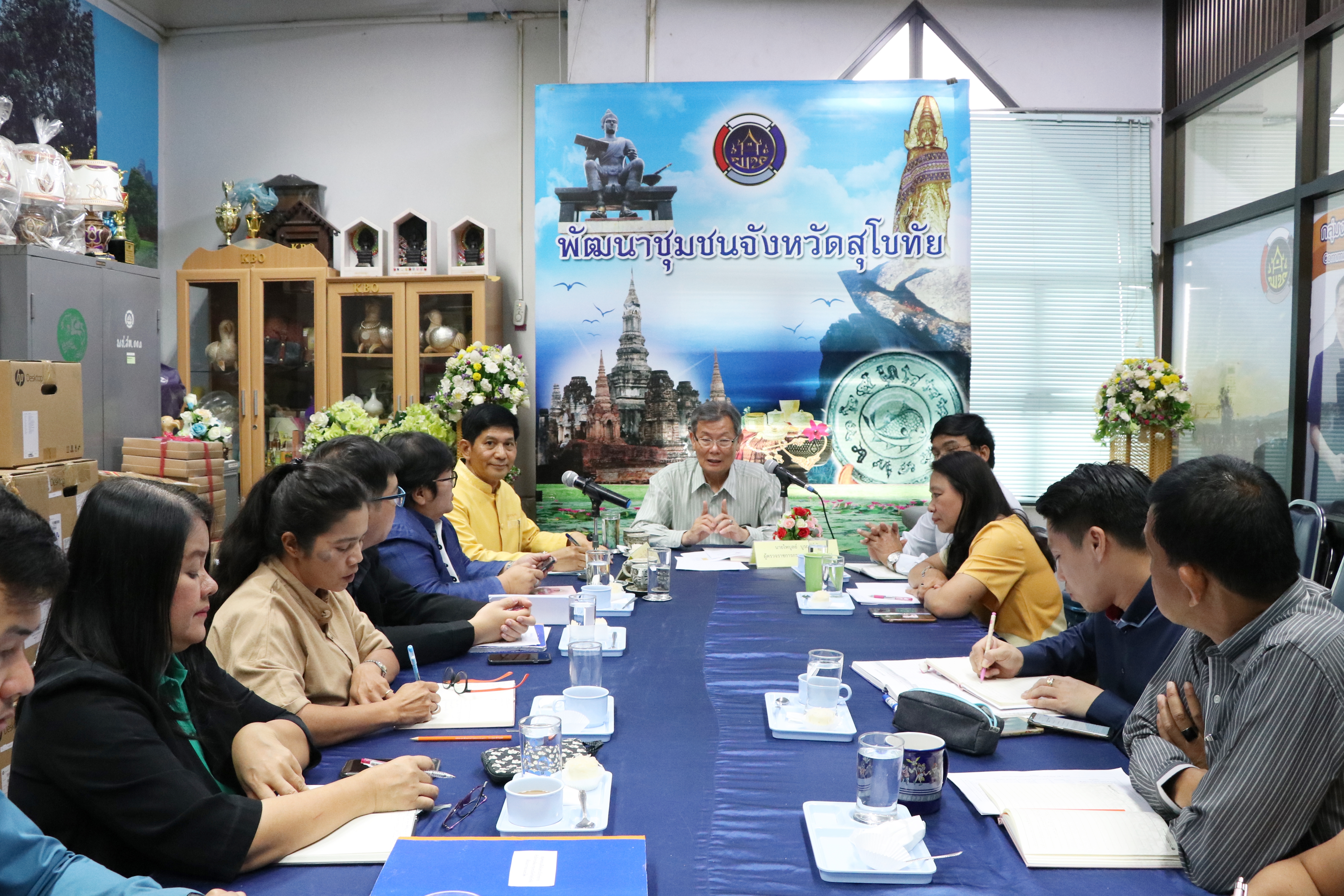 โดยนายสุวิน พึ่งเงิน พัฒนาการจังหวัดสุโขทัย ได้สรุปผลการดำเนินงานกิจกรรมต่างๆ และนำเสนอแผนการขับเคลื่อนโครงการกิจกรรมต่างๆ ในไตรมาสถัดไป ของสำนักงานพัฒนาชุมชนจังหวัดสุโขทัย โดยมีหัวหน้ากลุ่ม/ฝ่าย นักวิชาการพัฒนาชุมชนจังหวัด เข้าร่วมประชุม ณ ห้องประชุมสำนักงานพัฒนาชุมชนจังหวัดสุโขทัย ชั้น 5 ศาลากลางจังหวัดสุโขทัย