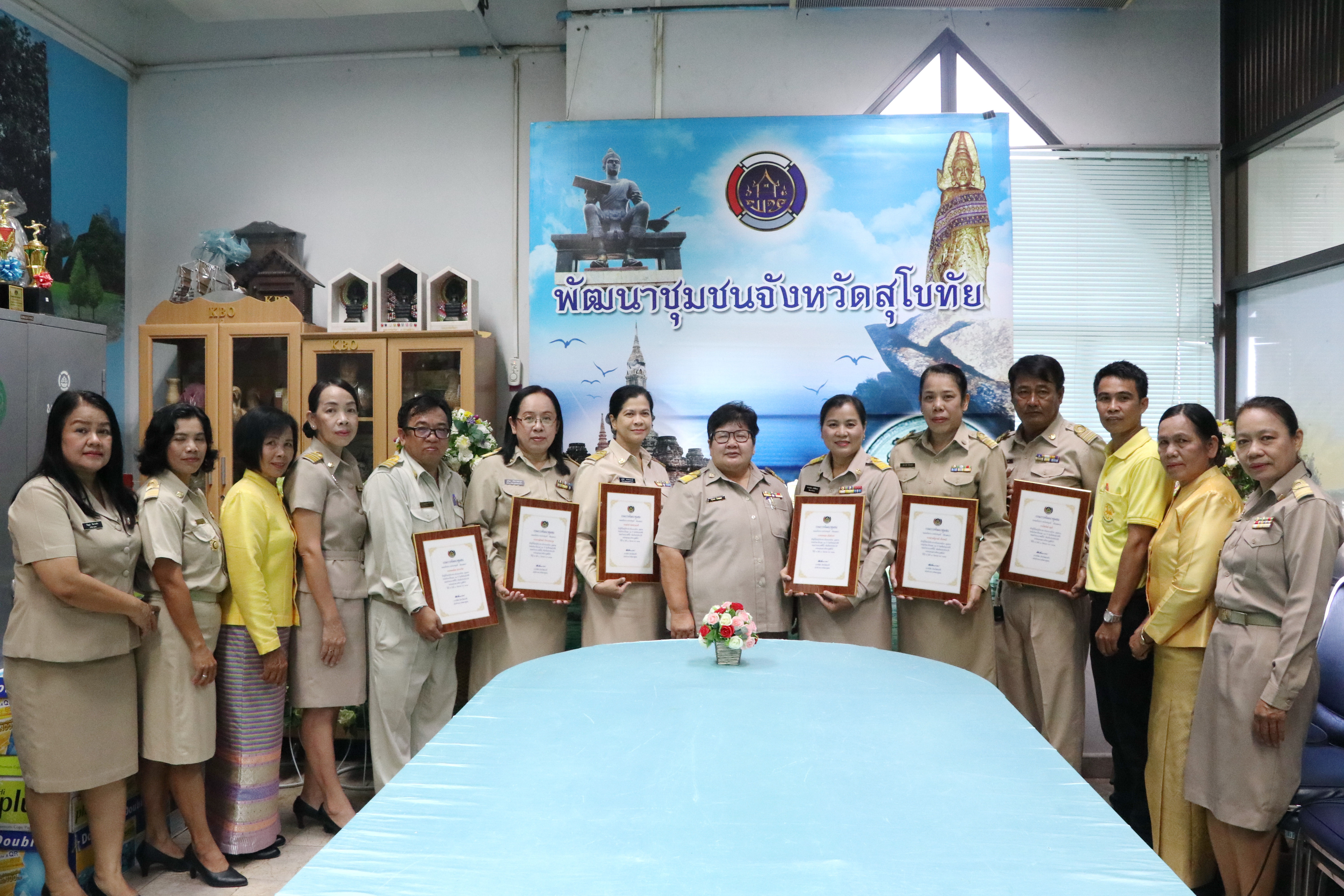 โดยก่อนวาระการประชุม นางสาวกฤษณา กันทะสา หัวหน้ากลุ่มงานยุทธศาสตร์ฯ รักษาราชการแทนพัฒนาการจังหวัดสุโขทัย กล่าวรายงานการมอบใบประกาศเกียรติคุณข้าราชการและลูกจ้างประจำที่ปฏิบัติราชการครบ 25 ปี จำนวน 6 ราย ได้แก่