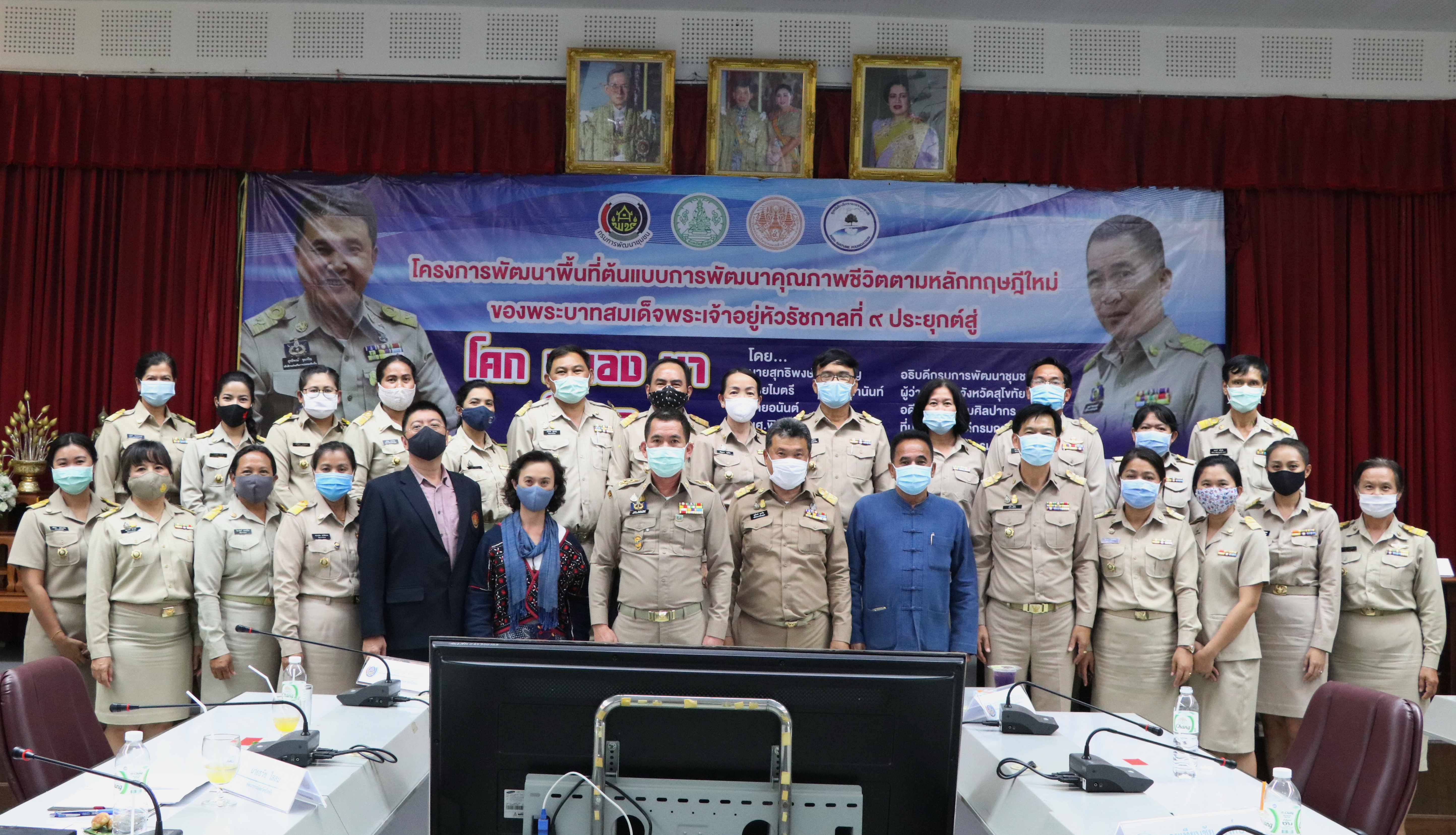วันที่ 22 มิถุนายน 2563 เวลา 16.00 น. นายสุทธิพงษ์ จุลเจริญ อธิบดีกรมการพัฒนาชุมชน ลงพื้นที่จังหวัดสุโขทัย เป็นประธานการประชุมชี้แจงการขับเคลื่อนโครงการพัฒนาพื้นที่ต้นแบบการพัฒนาคุณภาพชีวิตตามหลักทฤษฏีใหม่ประยุกต์สู่ “โคก หนอง นา โมเดล” เพื่อสื่อสารสร้างความรู้ ความเข้าใจ และเตรียมความพร้อมกับทางส่วนราชการและผู้เกี่ยวข้องของจังหวัดสุโขทัย โดยมีนายอนันต์ ชูโชติ อดีตอธิบดีกรมศิลปากร ผศ.พิเชฐ โสวิทยสกุล ที่ปรึกษาอธิบดีกรมการพัฒนาชุมชน และรศ.วรวรรณ โรจนไพบูลย์ ที่ปรึกษาอธิบดีกรมการพัฒนาชุมชน ร่วมแลกเปลี่ยน และนำเสนอหลักทฤษฏีใหม่ประยุกต์สู่ “โคก หนอง นา โมเดล” ให้กับกลุ่มเป้าหมายได้รับทราบแนวทางการขับเคลื่อนโครงการดังกล่าว โดยมีนายไมตรี ไตรติลานันท์ ผู้ว่าราชการจังหวัดสุโขทัย นายสุชาติ ทีคะสุข รองผู้ว่าราชการจังหวัดสุโขทัย นายธวัช ใสสม พัฒนาการจังหวัดสุโขทัย นายประยุกต์ สุดธัญญรัตน์ ผอ.ศูนย์ศึกษาและพัฒนาชุมชนพิษณุโลก หัวหน้าส่วนราชการระดับจังหวัด/อำเภอ พัฒนาการอำเภอ เจ้าหน้าที่พัฒนาชุมชน กลุ่ม/องค์กรสตรี ให้การต้อนรับ และร่วมประชุมครั้งนี้