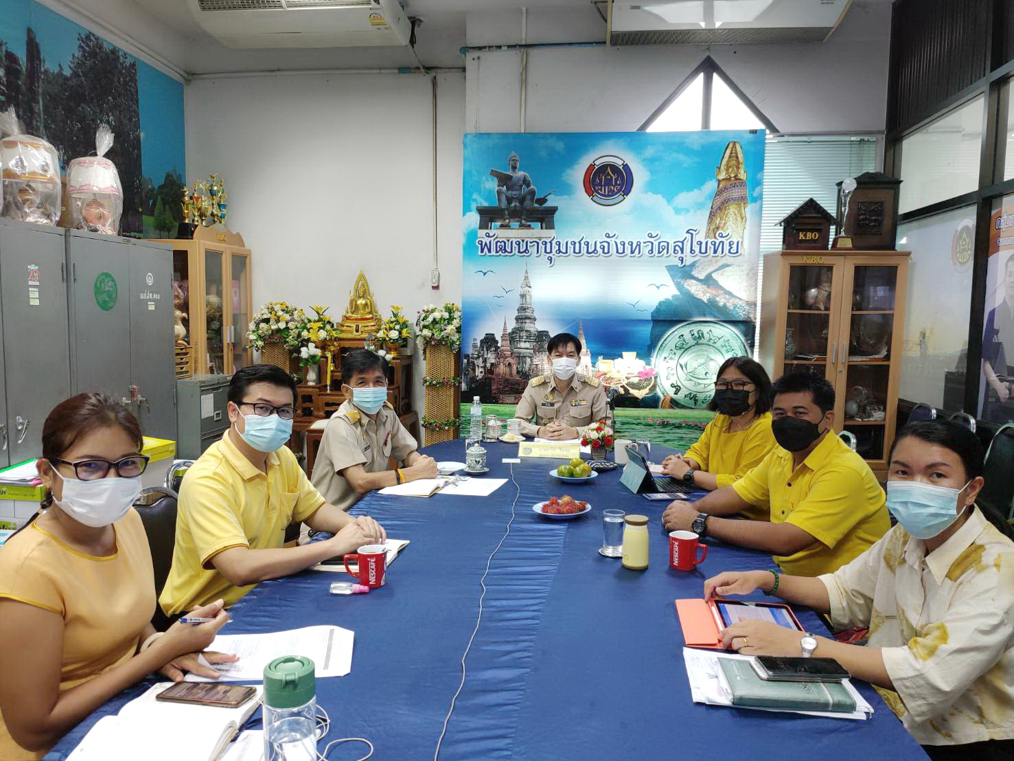 ในการนี้ นายธวัช ใสสม พัฒนาการจังหวัดสุโขทัย พร้อมด้วยผู้อำนวยการกลุ่มงานส่งเสริมฯ , ผู้อำนวยการกลุ่มงานสารสนเทศฯ และเจ้าหน้าที่พัฒนาชุมชนจังหวัด เข้าร่วมประชุมรับฟังข้อสั่งการฯและแนวทางการดำเนินงานของแต่ละกิจกรรมฯ ณ ห้องประชุมพัฒนาชุมชนจังหวัดสุโขทัย ชั้น 5 ศาลากลางจังหวัดสุโขทัย