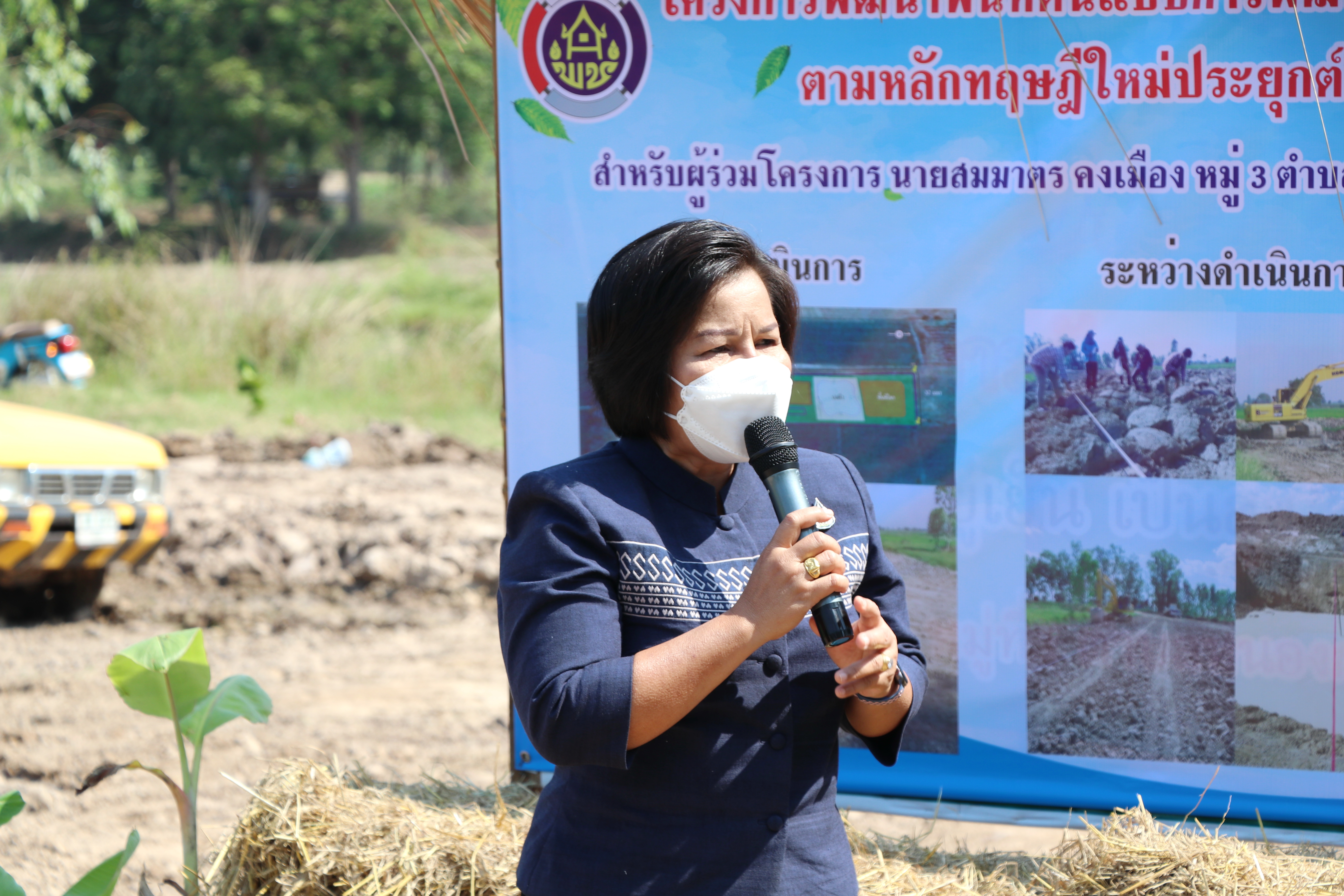 โดย ผู้ตรวจราชการกรมการพัฒนาชุมชน เขตตรวจราชการที่ 17 กล่าวว่า กรมการพัฒนาชุมชน ดำเนินโครงการพัฒนาพื้นที่ต้นแบบการพัฒนาคุณภาพชีวิตตามหลักทฤษฎีใหม่ประยุกต์สู่ “โคก หนอง นา โมเดล” ภายใต้แผนการฟื้นฟูเศรษฐกิจและสังคมจากผลกระทบของไวรัสโควิด-19 เพื่อสร้างคุณภาพชีวิตที่ดีอย่างมั่นคงให้กับพี่น้องประชาชนอย่างยั่งยืน ครอบคลุมทุกพื้นที่ในประเทศไทย ด้วยการการน้อมนำหลักปรัชญาของเศรษฐกิจพอเพียงประยุกต์สู่การปฏิบัติในรูปแบบ”โคก หนอง นา โมเดล”ตลอดจนการนำเอาหลัก บวร (บ้าน วัด ราชการ) ซึ่งเป็นหน่วยที่มีความสำคัญและมีความหมายสำหรับสังคมเป็นสามเสาหลัก ที่ยึดโยงค้ำจุน สัมพันธ์กัน อย่างสมดุล แก่คนในสังคมไทย มาเป็นจุดเริ่มต้นของชีวิตและเป็นหลักของการพัฒนา หากทุกคนสามารถเข้าใจอย่างถูกต้องตามหลักการแล้วนั้นก็จะสามารถนำองค์ความรู้ที่ได้รับไปปรับใช้พัฒนาพื้นที่ของตนเอง และในชุมชนให้เกิดการเปลี่ยนแปลงในทางที่ดีขึ้นได้อย่างแน่นอน จึงขอให้ครัวเรือน HLM นำองค์ความรู้ หลักการ ที่ผ่านการฝึกอบรมไปแล้วนั้น มาประยุกต์ใช้ในพื้นที่จริง สร้างการเปลี่ยนแปลงที่ดีในพื้นที่ชุมชน เป็นต้นแบบแก่ชุมชน โดยการน้อมนำหลักปรัชญาของเศรษฐกิจพอเพียงไปสู่การปฏิบัติ โดยยึดหลักการ “เข้าใจ เข้าถึง พัฒนา ก็จะสามารถนำพาชุมชนเกิดการพัฒนาอย่างยั่งยืน นำไปสู่ความมั่นคง มั่งคั่ง ยั่งยืนในชุมชนอย่างแท้จริง