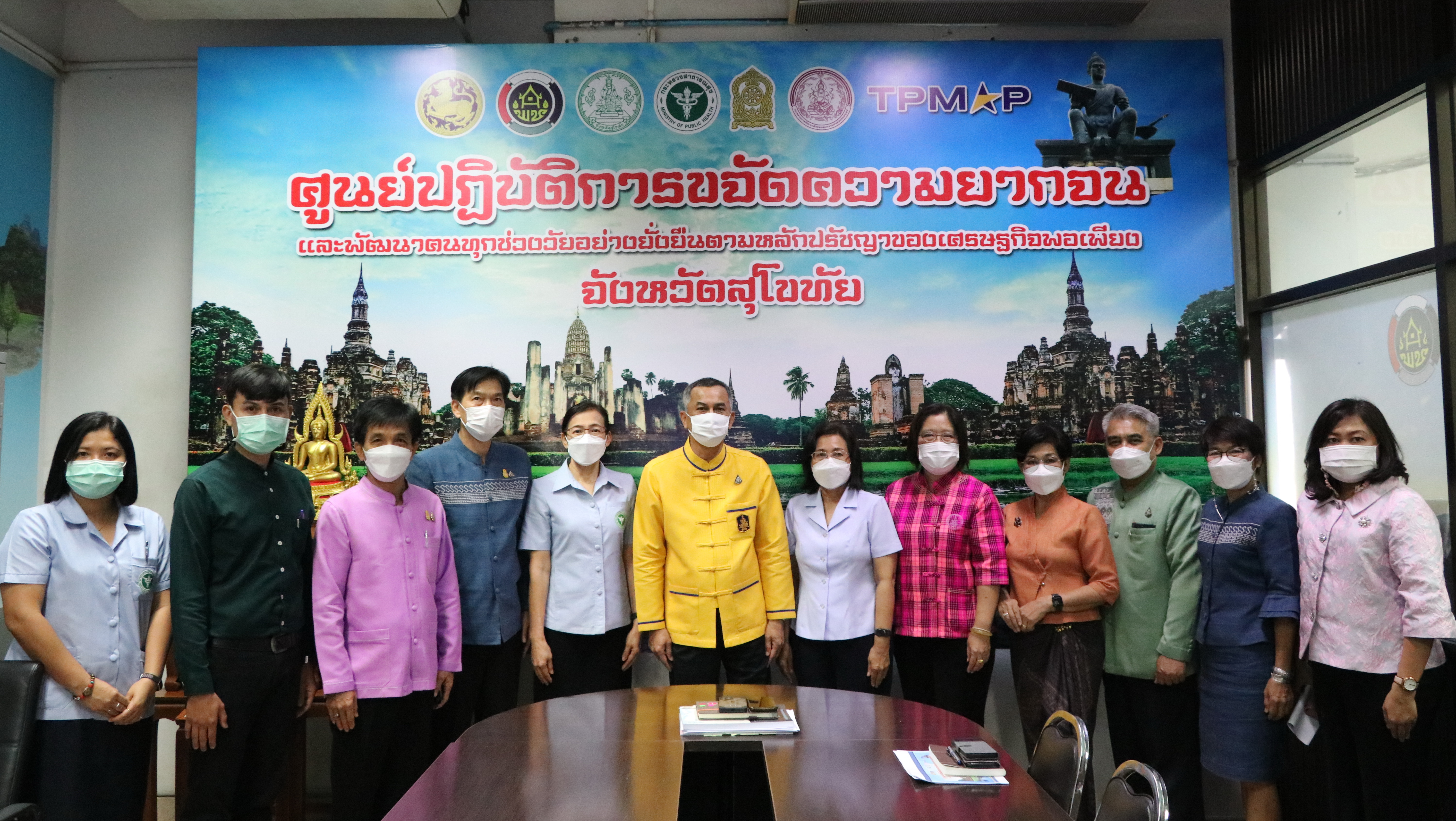 วันที่ 9 มีนาคม 2565 เวลา 13.30 น. นายวิรุฬ พรรณเทวี ผู้ว่าราชการจังหวัดสุโขทัย เป็นประธานการประชุมมอบแนวทางและเปิดศูนย์ปฏิบัติการขจัดความยากจนและพัฒนาคนทุกช่วงวัยอย่างยั่งยืนตามหลักปรัชญาของเศรษฐกิจพอเพียง จังหวัดสุโขทัย ผ่านระบบ Google Meet และ Facebook live โดยมีวัตถุประสงค์เพื่อมอบแนวทางการดำเนินงาน การสนับสนุนการขับเคลื่อนงานในพื้นที่ เพื่อให้เกิดการขับเคลื่อนการแก้ไขปัญหาความยากจนอย่างมีประสิทธิภาพ เกิดผลเป็นรูปธรรม และเกิดการบูรณาการความร่วมมือกับทุกภาคส่วน นำไปสู่การแก้ไขปัญหาความเดือนร้อนของประชาชนชาวสุโขทัยในทุกมิติได้อย่างแท้จริง รวมทั้งเปิดศูนย์ปฏิบัติการขจัดความยากจนและพัฒนาคนทุกช่วงวัยอย่างยั่งยืนตามหลักปรัชญาของเศรษฐกิจพอเพียง จังหวัดสุโขทัย เพื่อเป็นศูนย์กลางในการประสานงาน และรวบรวมข้อมูลในการขับเคลื่อนโครงการดังกล่าว ณ ห้องประชุมสำนักงานพัฒนาชุมชนจังหวัดสุโขทัย ชั้น 5 ศาลากลางจังหวัดสุโขทัย
