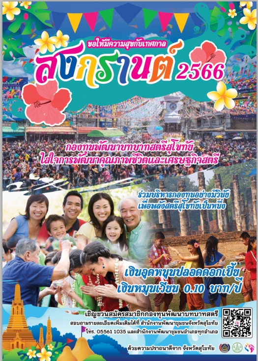 พช. สุโขทัย ร่วมกับกองทุนพัฒนาบทบาทสตรีสุโขทัย อวยพรสงกรานต์ 2566 11 เมษายน 66 / 14.35 น. พช. สุโขทัย ร่วมกับกองทุนพัฒนาบทบาทสตรีสุโขทัย ขอให้ทุกท่านมีความสุขในเทศกาลสงกรานต์ 2566 (Visited 1 times, 1 visits today)Facebook iconFacebookTwitter iconTwitterLINE iconLine