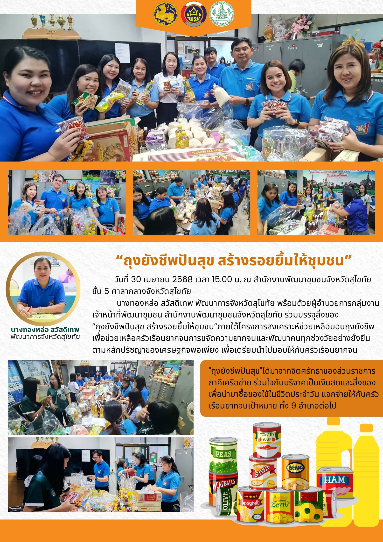 😃พัฒนาชุมชนสุโขทัยร่วมกันบรรจุ “ถุงยังชีพปันสุข สร้างรอยยิ้มให้ชุมชน”😃