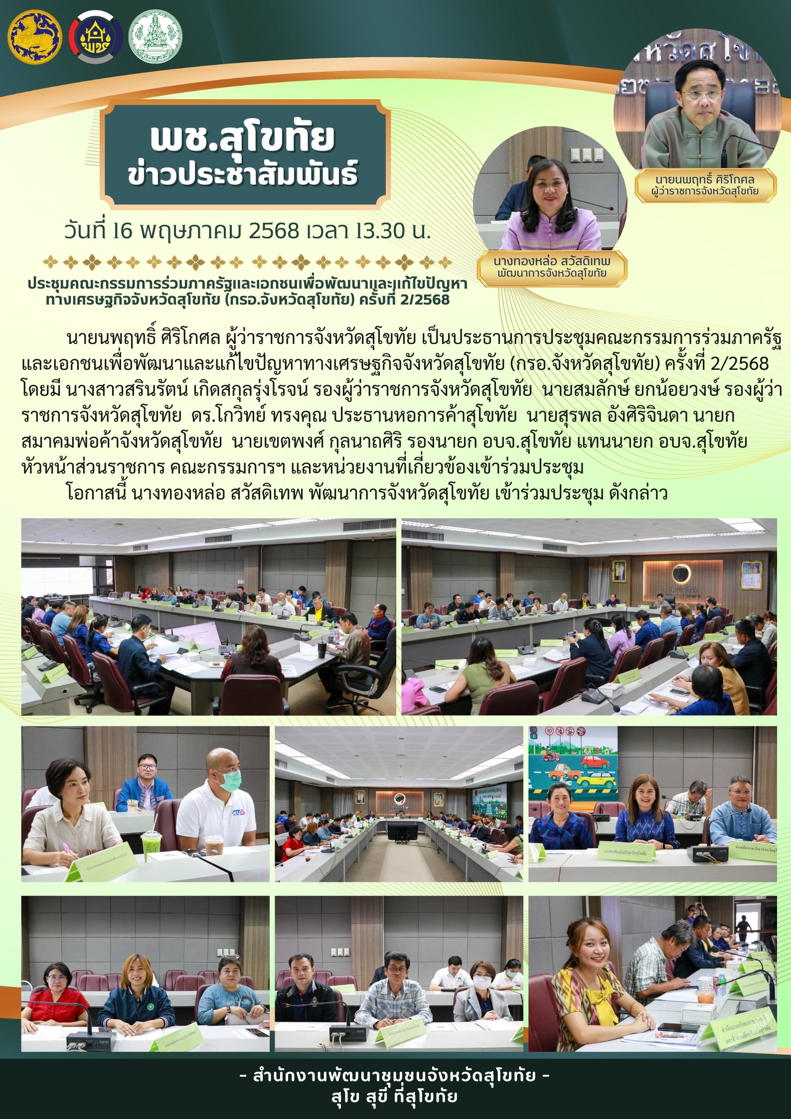 ⏰️วันที่ 16 พฤษภาคม 2568 เวลา 13.30 น. ณ ห้องประชุมศรีนคร ชั้น 3 ศาลากลางจังหวัดสุโขทัย