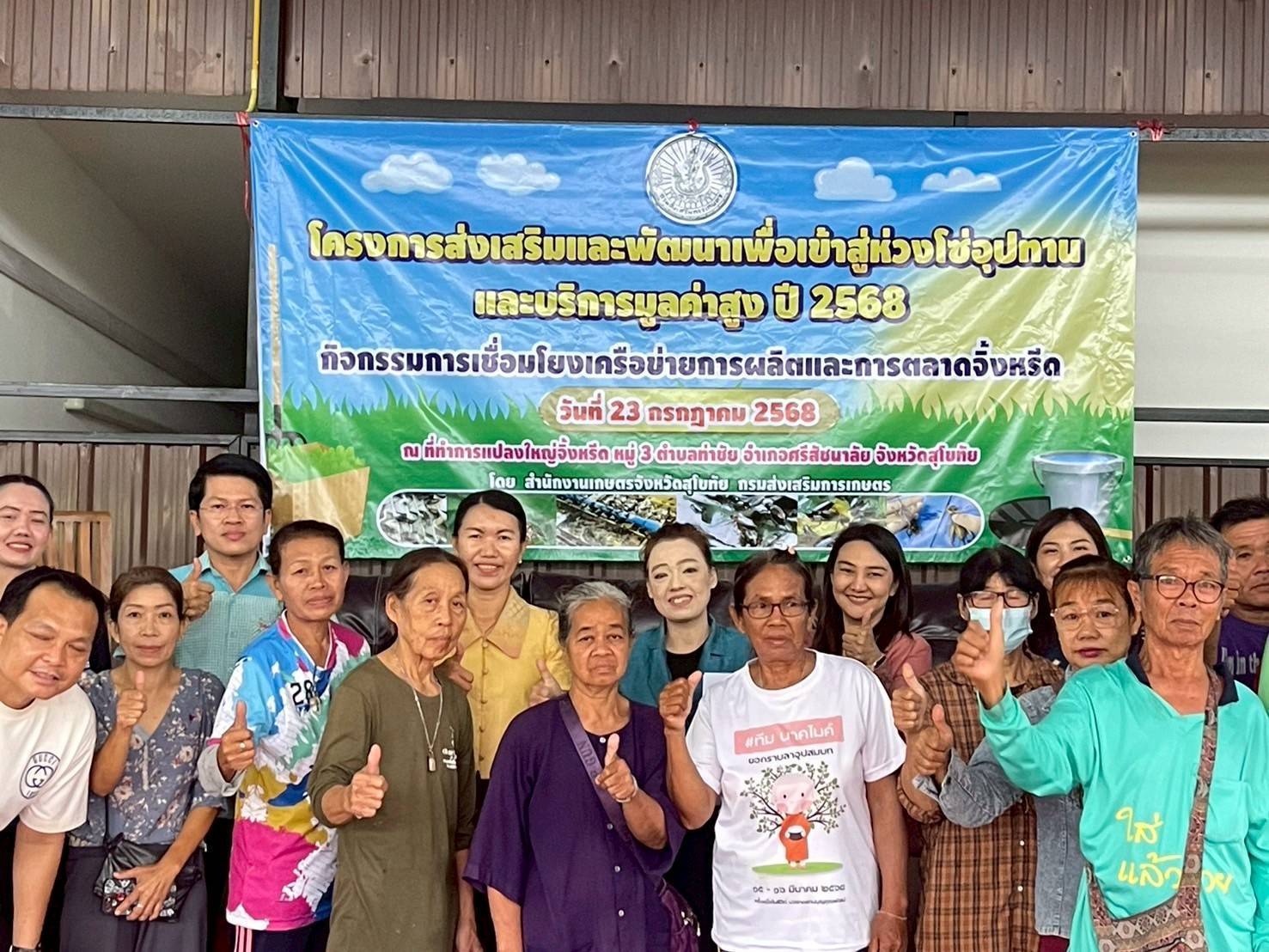 ⭐️นางทองหล่อ สวัสดิเทพ พัฒนาการจังหวัดสุโขทัย มอบหมายให้นางสาวทับทิม ม่วงทุ่ง นักวิชาการพัฒนาชุมชนชำนาญการพิเศษ เข้าร่วมเวทีเสวนาเชื่อมโยงเครือข่ายการผลิตและการตลาดจิังหรีด ภายใต้โครงการส่งเสริมและพัฒนาเพื่อเข้าสู่ห่วงโซ่อุปทานและบริการมูลค่าสูงปี 2568 โดยมีวัตถุประสงค์เพื่อพัฒนาและเพิ่มมูลค่าสินค้าเกษตรและบริการมูลค่าสูงเพื่อยกระดับรายได้ของครัวเรือนเกษตรกรสามารถแก้ไขปัญหาราคาสินค้าเกษตรได้ในระยะยาว ครัวเรือนเกษตรกรมีรายได้เพิ่มขึ้น สามารถพึ่งพาตนเองได้และสามารถเป็นต้นแบบสำหรับการขยายผลสู่เกษตรกรรายอื่น