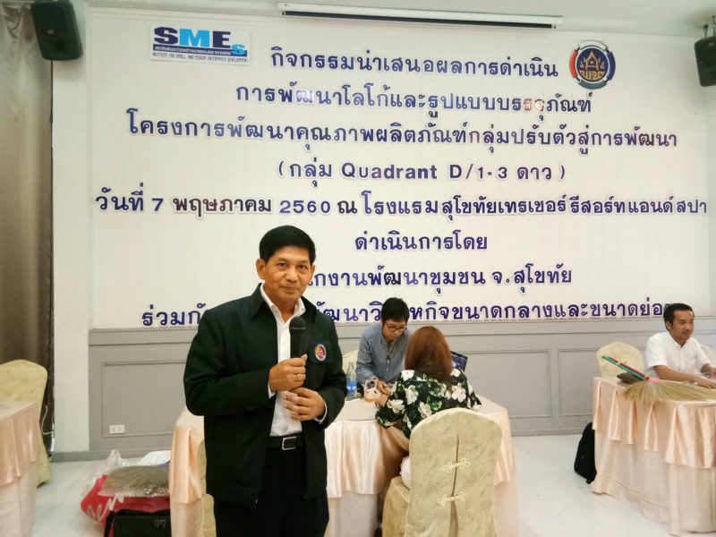โครงการพัฒนาคุณภาพผลิตภัณฑ์กลุ่มปรับตัวสู่การพัฒนา (กลุ่ม Quadrant D) กิจกรรมนำเสนอผลการดำเนินการพัฒนาโลโก้และรูปแบบบรรจุภัณฑ์ เพื่อส่งเสริมช่องทางการตลาดและเพิ่มมูลค่าสินค้า OTOP