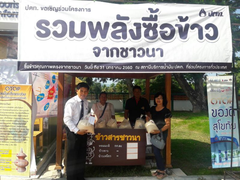 #สุโขทัย ดินแดนแห่งความสุข #นายสุวิน พึ่งเงิน พัฒนาการจังหวัดสุโขทัย ออกตรวจเยี่ยมร้านค้าประชารัฐสุขใจในปั๊มน้ำมัน ปตท. อำเภอคีรีมาส ซึ่งเป็นจุดวางจำหน่ายข้าวสารของเกษตรกรชาวนา ของ ต.น้ำพุ และตำบลอื่น ๆ ของอำเภอคีรีมาส ราคาขายถุงละ 5 กก. ราคาถุงละ 150