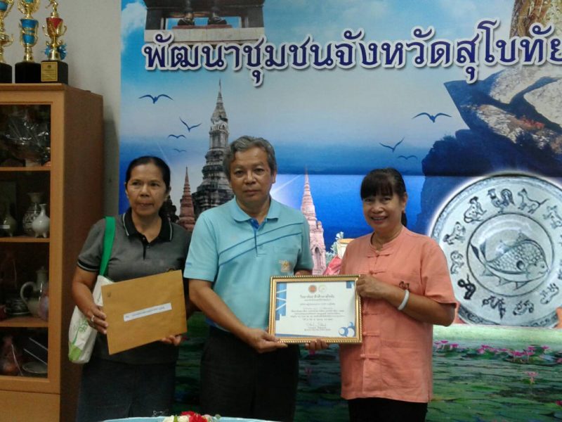#สุโขทัย ดินแดนแห่งความสุข#นายสุวิน พึ่งเงิน พัฒนาการจังหวัดสุโขทัย มอบหมายให้นายประนทต์ ปัจฉิม หัวหน้ากลุ่มงานส่งเสริมการพัฒนาชุมชน รับมอบเกียรติบัตรจากผู้แทนวิทยาลัยอาชีวศึกษาสุโขทัย เนื่องจากให้ความอนุเคราะห์การในการประสานงานกับประธานเครือข่ายผู้ปร