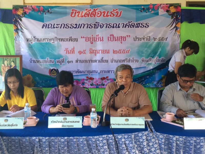 #สุโขทัย ดินแดนแห่งความสุข#จังหวัดสุโขทัย สำนักงานพัฒนาชุมชนจังหวัดสุโขทัยดำเนินโครงการเชิดชูเกียรติผู้นำเครือข่ายพัฒนาชุมชนดีเด่น ประจำปี 2559: กระบวนการเชิดชูเกียรติ จุดที่ 7 ณ บ้านหนองกระดิ่ง ม.1 ต.หนองกระดิ่ง อ.คีรีมาศ จ.สุโขทัย