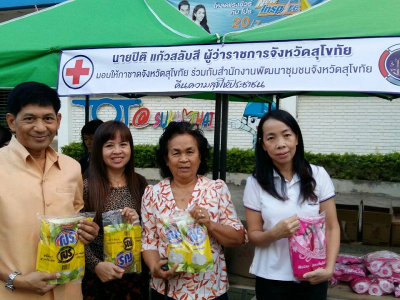 #สุโขทัย ดินแดนแห่งความสุข#สำนักงานพัฒนาชุมชนจังหวัดสุโขทัยร่วมกับกรรมการกาชาดจังหวัดสุโขทัย นำสิ่งของที่เหลือจากการจัดงานพระแม่ย่าและงานกาชาด ปี2559 มาจำหน่ายให้แก่ประชาชนในราคาต้นทุน เพื่อคืนความสุขให้แก่ประชาชน ตามโครงการตลาดนัดชุมชน ไทยช่วยไทย คนไทยยิ