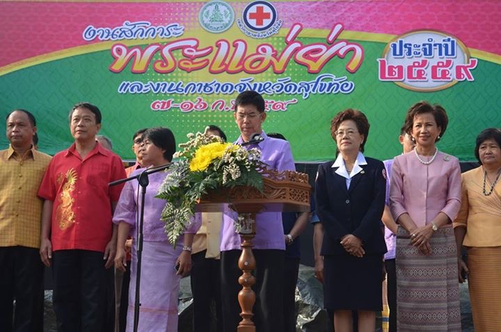 #สุโขทัย ดินแดนแห่งความสุข# นายปิติ แก้วสลับสี ผู้ว่าราชการจังหวัดสุโขทัย เปิดงานสักการะพระแม่ย่าและงานกาชาดสุโขทัย ประจำปี 2559 ซึ่งจัดขึ้น ระหว่างวันที่ 7 – 16 กุมภาพันธ์ 2559 โดยสำนักงานพัฒนาชุมชนจังหวัดสุโขทัย นำขบวนฝ่ายสตรีรวมใจเทิดพระเกียรติพระแม่ย่