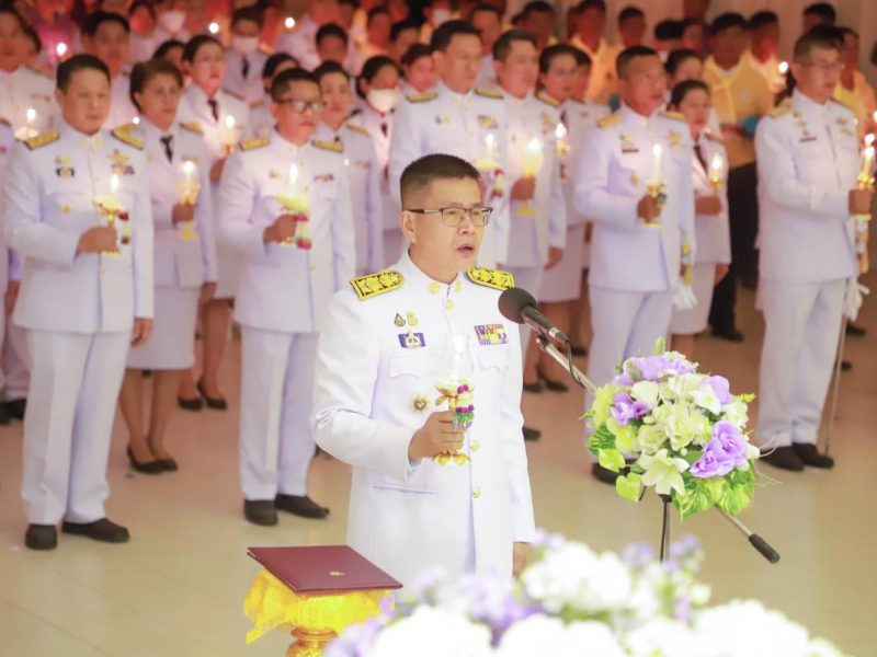 พัฒนาชุมชนสุโขทัย ร่วมพิธีถวายเครืองราชสักการะและวางพานพุ่ม และพิธีจุดเทียนถวายพระพรชัยมงคล