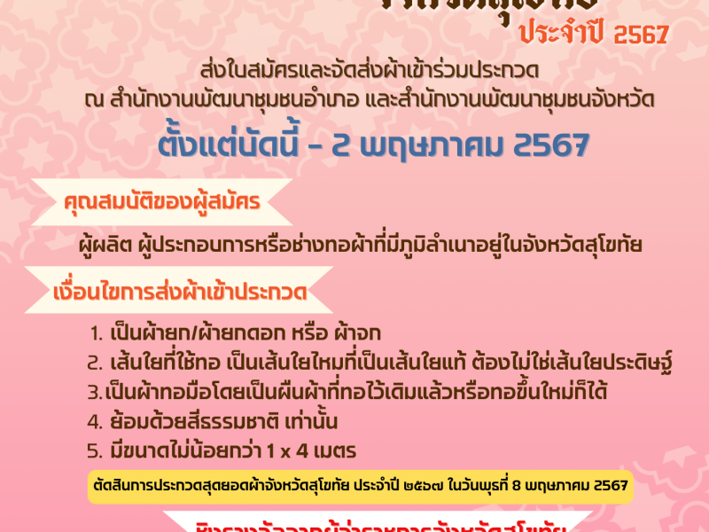 🧣🎇การประกวดสุดยอดผ้า จังหวัดสุโขทัย ประจำปี 2567 🎉🎉
