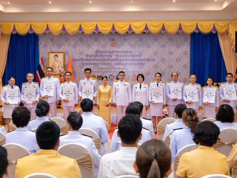 🦋จังหวัดสุโขทัย จัดพิธีมอบแบบลายผ้าพระราชทาน “ผ้าลายสิริวชิราภรณ์” “ผ้าลายชบาปัตตานี” และเครื่องหมายรับรองสินค้าแฟชั่นและหัตถกรรมพระราชทาน “Sustainable Fashion : แฟชั่นแห่งความยั่งยืน”