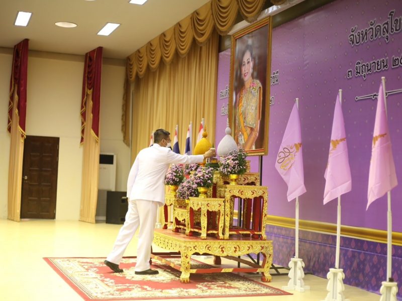 พช.สุโขทัย ร่วมพิธีทำบุญตักบาตรถวายพระราชกุศล เฉลิมพระเกียรติสมเด็จพระนางเจ้าฯ พระบรมราชินี