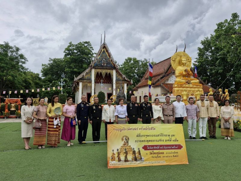 ร่วมพิธีบรรจุพระบรมสารีริกธาตุ และถวายพระพุทธธรรมจักร องค์ที่ ๑๕๒ ณ วัดไทยชุมพล ตำบลธานี อำเภอเมืองสุโขทัย จังหวัดสุโขทัย