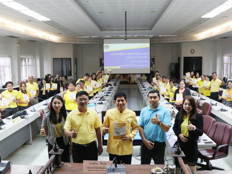 นที่ 10 กรกฏาคม 2562 เวลา 09.30 นายสุวิน พึ่งเงิน พัฒนาการจังหวัดสุโขทัย เป็นประธานเปิดการประชุมเชิงปฏิบัติการคลินิกสร้างสุขกองทุนชุมชน (Move for fund team)ณ ห้องประชุมศรีสัชนาลัย ชั้น 5 ศาลากลางจังหวัดสุโขทัย
