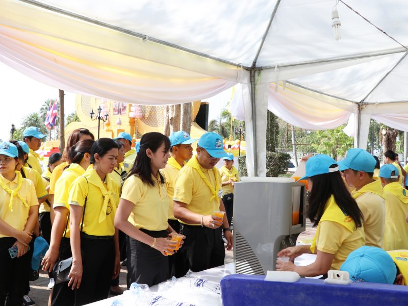 สำนักงานพัฒนาชุมชนจังหวัดสุโขทัย นำอาหารและเครื่องดื่ม มาบริการและแจกจ่ายให้กับพี่น้องประชาชนที่เข้าร่วมกิจกรรมอันเกี่ยวเนื่องกับงานพระราชพิธีบรมราชาภิเษก ณ บริเวณหน้าศาลากลางจังหวัดสุโขทัย