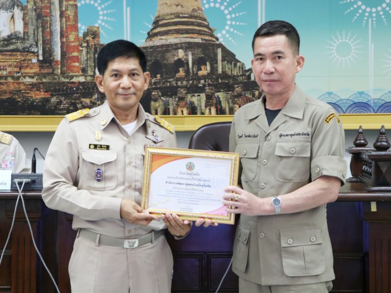 นายสุวิน พึ่งเงิน พัฒนาการจังหวัดสุโขทัย รับมอบเกียรติบัตรเป็นหน่วยงานดีเด่น ที่ได้สนับสนุนการขับเคลื่อนงานการพัฒนาคุณภาพบริหารจัดการภาครัฐระดับพื้นฐาน PMQA