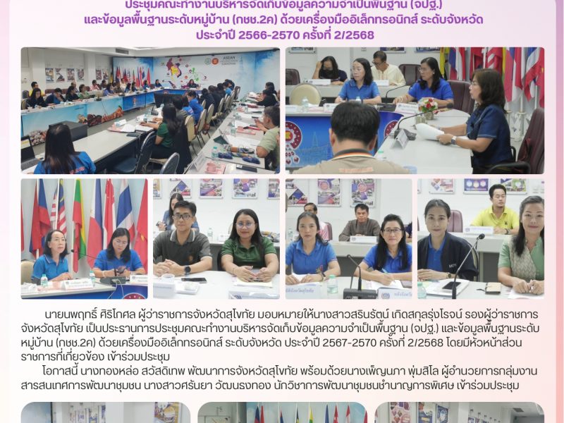 การประชุมคณะทำงานบริหารจัดเก็บข้อมูลความจำเป็นพื้นฐาน (จปฐ.) และข้อมูลพื้นฐานระดับหมู่บ้าน (กชช.2ค) ด้วยเครื่องมืออิเล็กทรอนิกส์ ระดับจังหวัด ประจำปี 2568 ครั้งที่ 2/2568