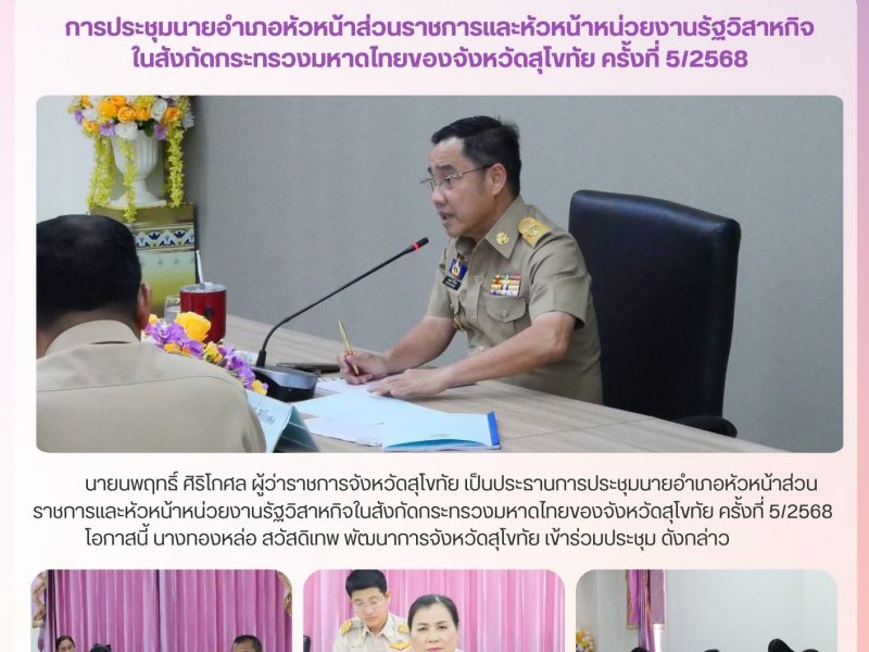 พช.สุโขทัย ร่วมการประชุมนายอำเภอหัวหน้าส่วนราชการและหัวหน้าหน่วยงานรัฐวิสาหกิจในสังกัดกระทรวงมหาดไทยของจังหวัดสุโขทัย ครั้งที่ 5/2568