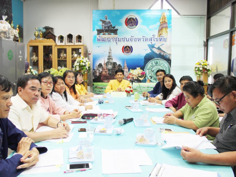 วันที่ 12 มิถุนายน 2561 นายสุวิน พึ่งเงิน พัฒนาการจังหวัดสุโขทัย มอบหมายให้นางสาวกฤษณา กันทะสา หัวหน้ากลุ่มงานยุทธศาสตร์ฯ และคณะกรรมการฯ ลงพื้นที่พิจารณาคัดสรรหมู่บ้านเศรษฐกิจพอเพียง “อยู่เย็น เป็นสุข” ประจำปี 2561 จังหวัดสุโขทัย เพื่อคัดสรรกิจกรรมพัฒนาชุมชนดีเด่นระดับจังหวัด สำหรับเข้ารับพระราชทานโล่รางวัลเพื่อเชิดชูเกียรติ