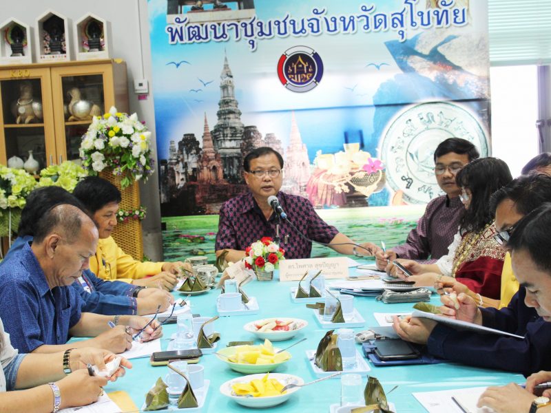 ดร.ไพศาล สุขปัญญา ผู้ตรวจราชการกรมการพัฒนาชุมชน เขตตรวจราชการที่ 17และ 18 เป็นประธานการประชุมให้คำปรึกษาหารือแนวทางการขับเคลื่อนโครงการ และกิจกรรมต่างๆ เช่น โครงการท่องเที่ยวชุมชนท่องที่ยว OTOP นวัตวิถีของจังหวัดสุโขทัย