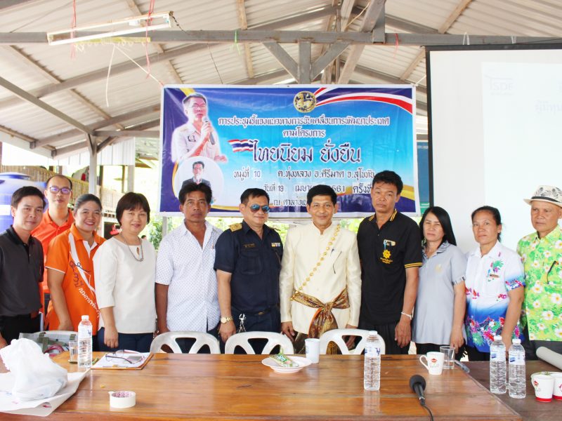 วันที่ 19 เมษายน 2561 เวลา 09.30 น. นายสุวิน พึ่งเงิน พัฒนาการจังหวัดสุโขทัย ลงพื้นที่ติดตามการขับเคลื่อนการพัฒนาประเทศตามโครงการ “ไทยนิยม ยั่งยืน” ระดับตำบล เวทีที่ 3 “ปรับเปลี่ยนความคิด ด้วยการน้อมนำหลักปรัชญาของเศรษฐกิจพอเพียงไปปฏิบัติ”
