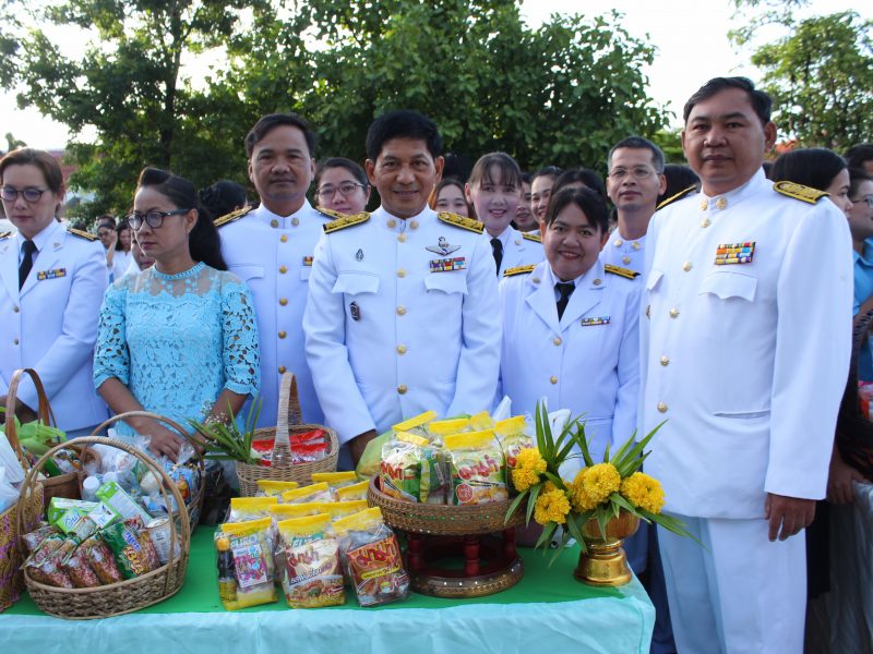 ร่วมพิธีทำบุญตักบาตร ข้าวสาร อาหารแห้ง แด่พระสงฆ์ จำนวน 86 รูป และพิธีลงนามถวายพระพร 9 เนื่องในโอกาสวันเฉลิมพระชนมพรรษา 85 พรรษา 12 สิงหาคม 2560