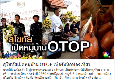คลิปข่าว…เปิดอย่างเป็นทางการและยิ่งใหญ่ หมู่บ้าน OTOP เพื่อการท่องเที่ยว ประจำปี 2560 จังหวัดสุโขทัย