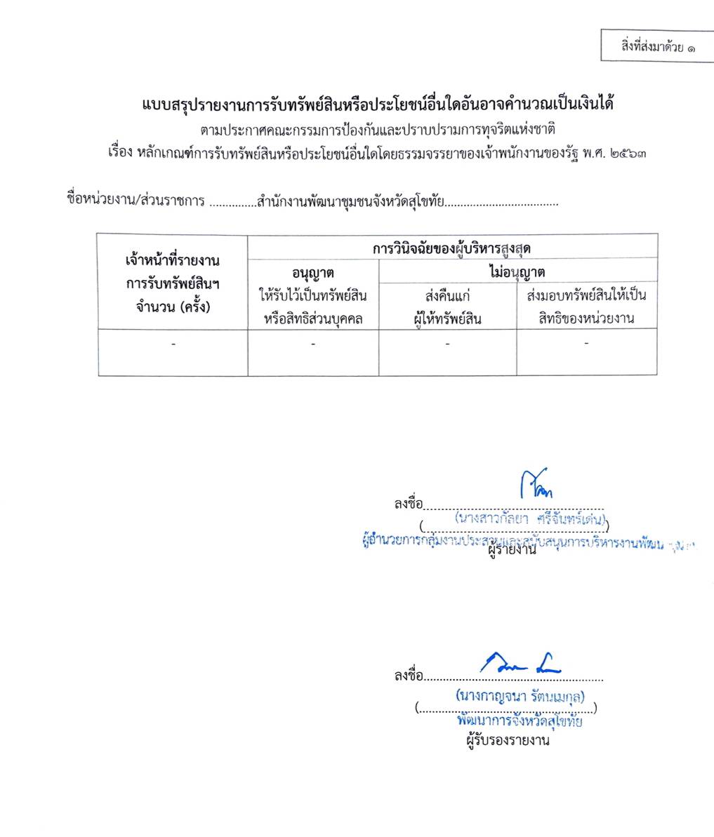 รายงานการรับทรัพย์สินหรือประโยชน์อื่นใดโดยธรรมจรรยา